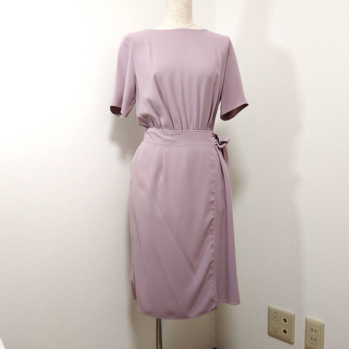 OFUON オフオンのワンピース。スカート部分が巻きスカートになっています。 サイズ38。お色は淡いパープル。