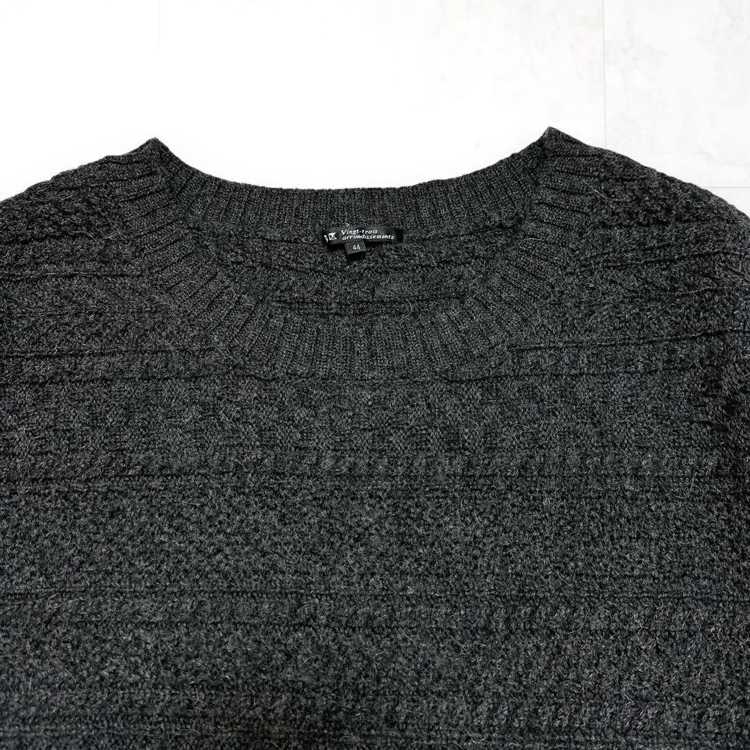 アルパカ ウール ローゲージ編み ニット チャコールグレー 厚手 大きいサイズ