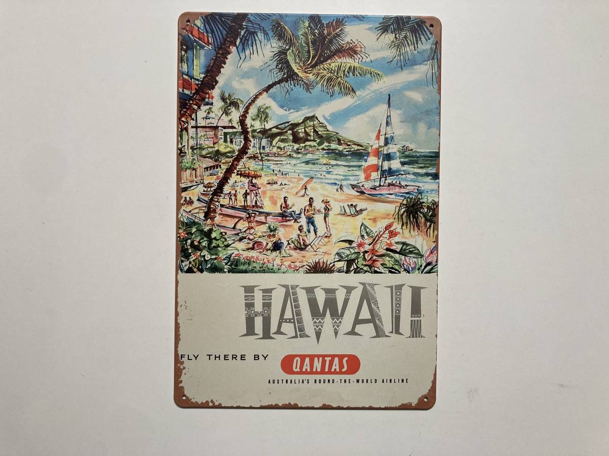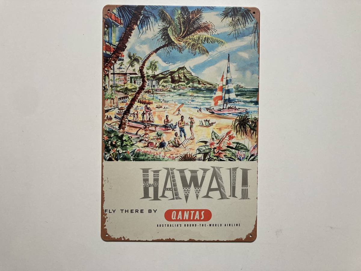 ブリキ看板 20×30㎝ HAWAII ハワイ ハワイアン 波 サーフィン 水着 海 レトロ TIN アメリカンガレージ お洒落に インテリア 新品 P229