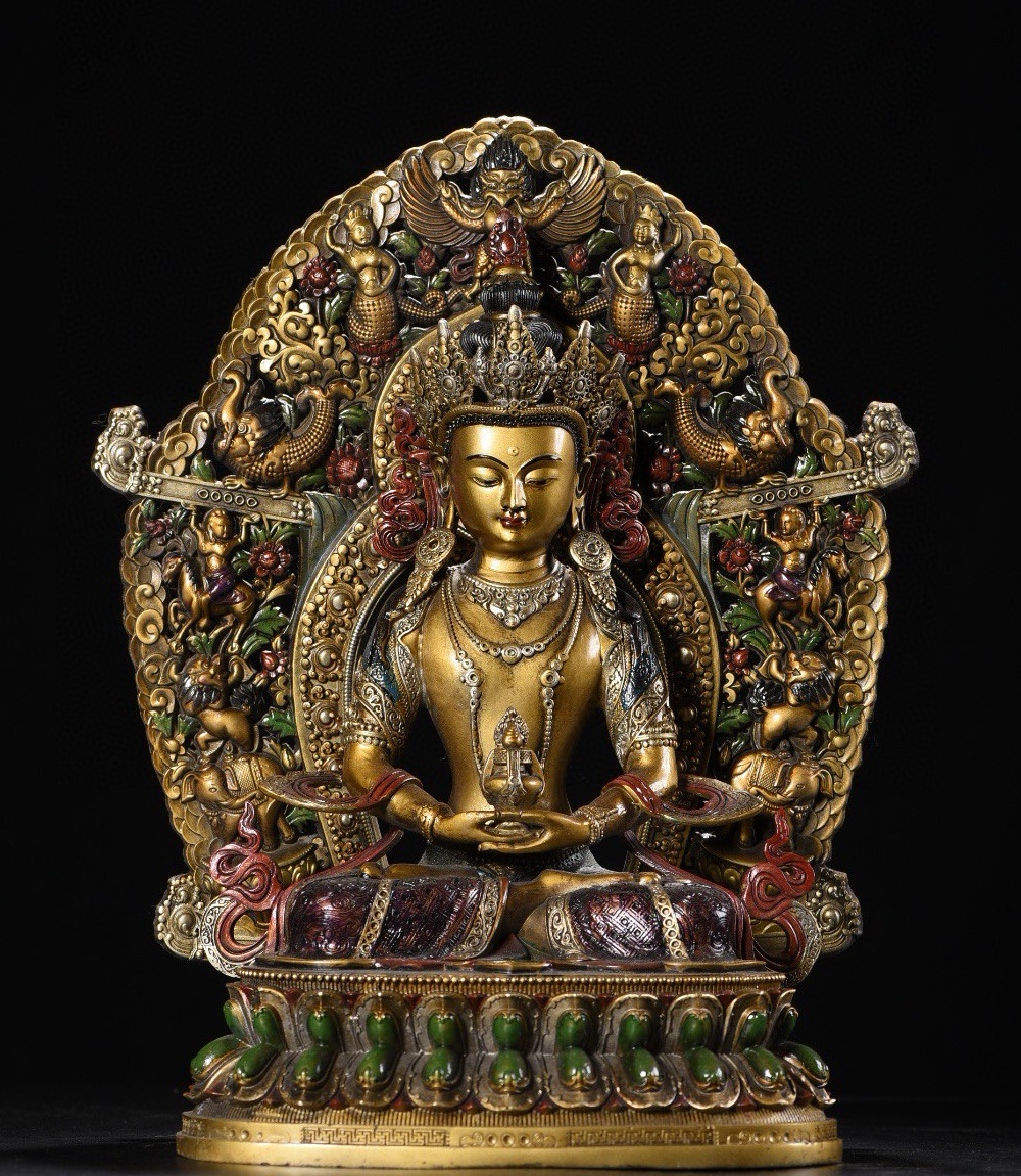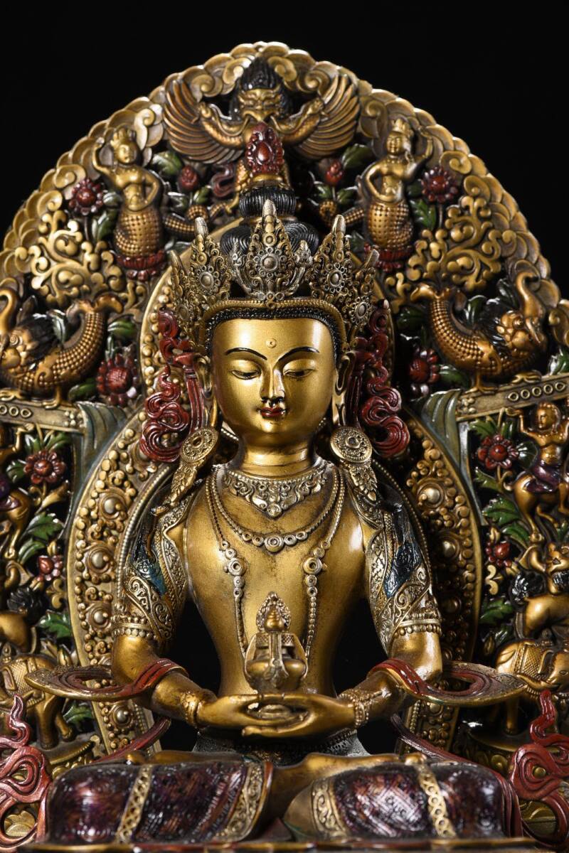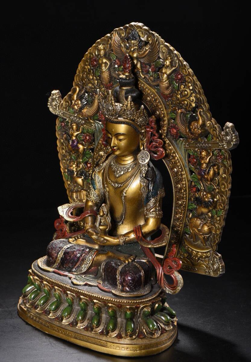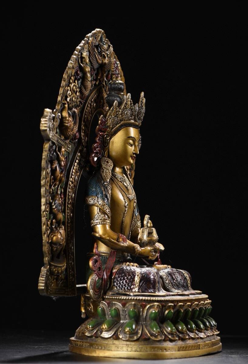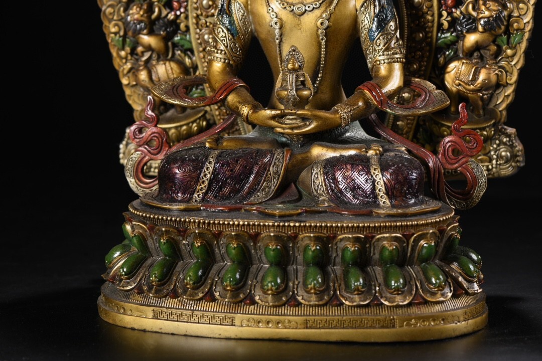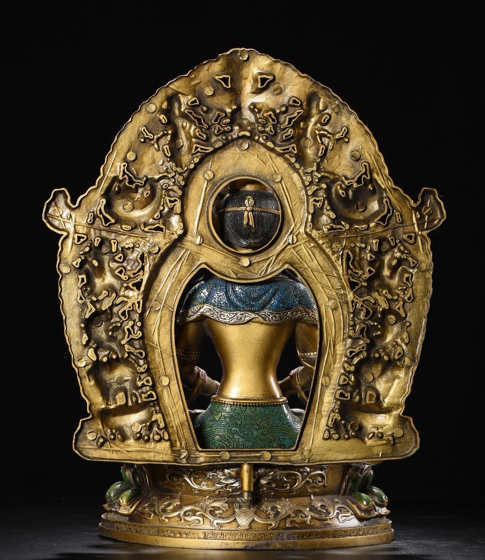 *珍品旧蔵* 清代 銅彩繪四臂 觀音 造像 唐物 中国古玩 古賞物 ZK1213