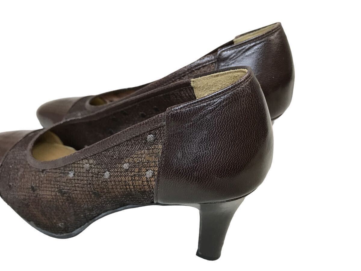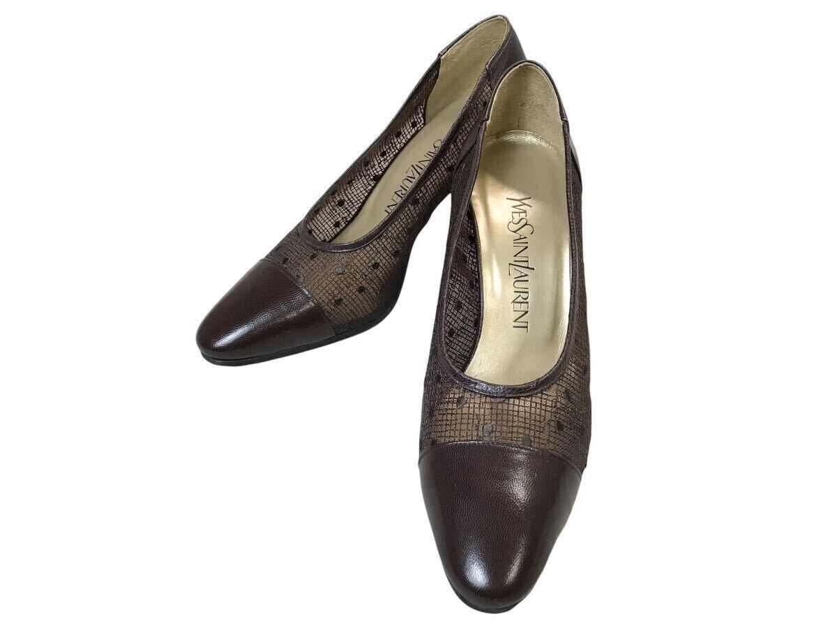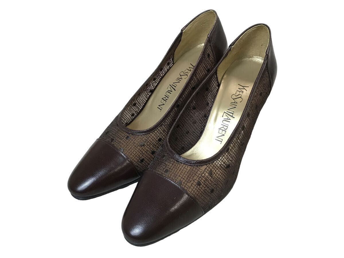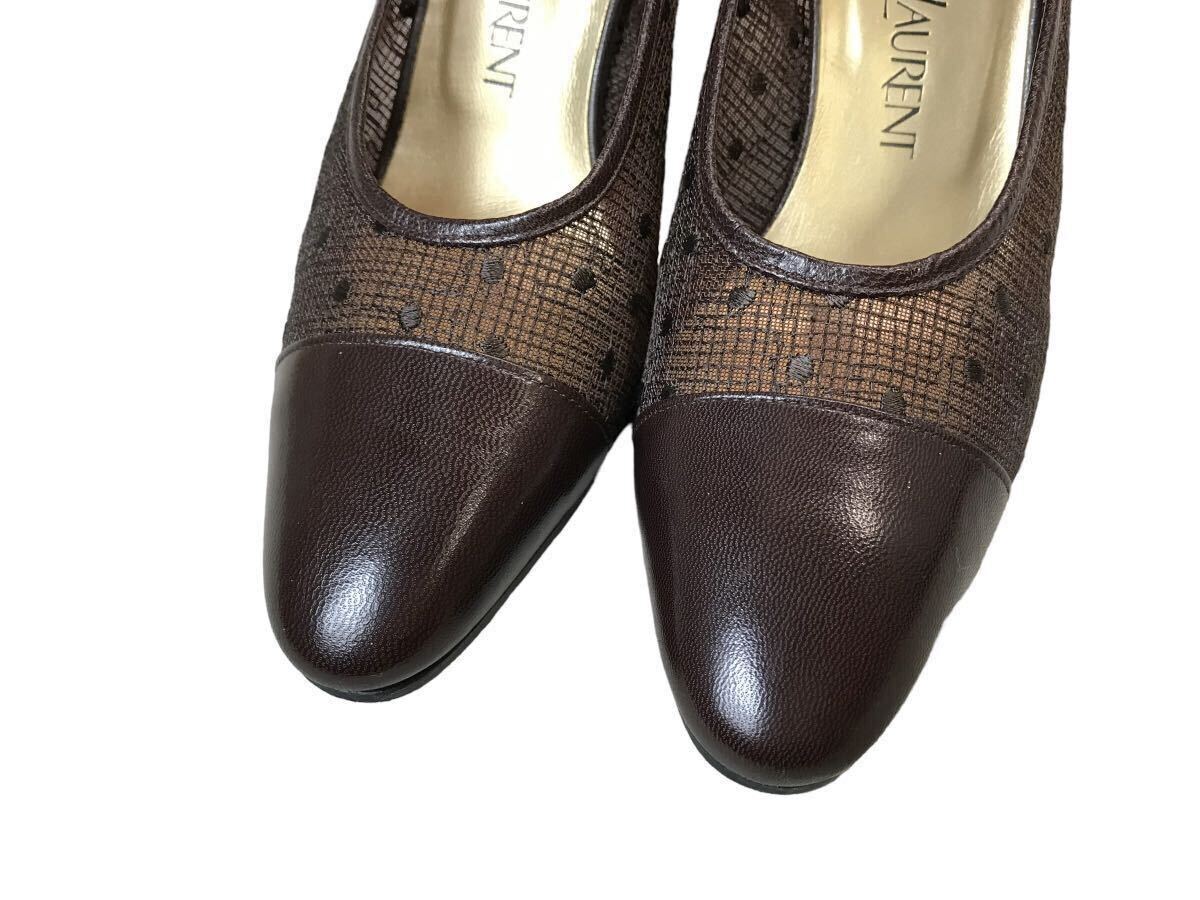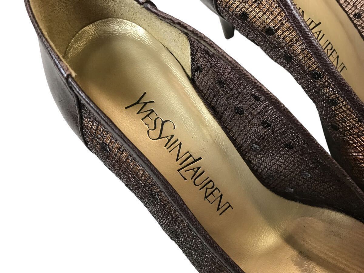 (D) yves saint laurent イヴサンローラン シースルー ドット パンプス 35 ブラウン (ma)