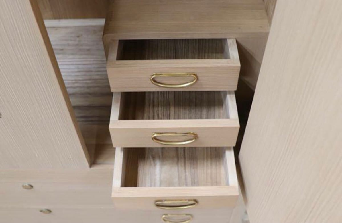 高級家具の名産地である府中家具でも最高峰に位置する松創はひとつの芸術作品を造る気持ちで家具をつくることを基本理念とし、 優れた材料を選ぶ目、材料を素材として活かす技術、細部まで一切の妥協を許さず作り上げる職人の技が魅力です。 松創の歴史は、釘を一切使わず、ホゾや框(かまち)で組み上げる指物技術による桐たんすや漆塗りの座卓等、日本の伝統技術を用いた高級和家具の生産からはじまりました。 近年では、主にそれらの技術を活かした、リビングやダイニング、寝室等で用いる洋家具を手がけています。
