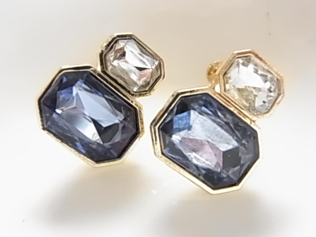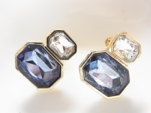 ★ブルートーンとクリアトーンのキラキラのジュエルストーンが輝いて綺麗な印象 耳元華やぐデザインの素敵なイヤリング