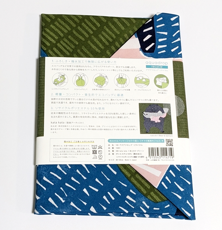 新品未使用 ●サイズ:約100cm ●素材:ポリエステル100%(リサイクルポリエステル繊維55%)/ 撥水加工 ●約100グラム(軽量) アクアドロップは生地に水を汲めるほどの強力な撥水加工を施しています。 汚れも付きにくく、速乾性にも優れています。鞄に1枚入れておくと、日常のエコバッグから雨カバー、災害時の吸水バッグ、おむつ替えシートにもなり大変便利です。 人気のkatakataさんデザイン「くまとさけ」 前バージョンから継続されています。 型染アーティストkata kataは、松永武さん・高井知恵さんの二人からなるユニットです。 型染め、注染、フ゜リントによる染布を制作し、展示会やク゛ルーフ゜展に多数出展されています。 手ぬぐい等の雑貨は全国の雑貨店などでも取り扱われ人気を博しています。 |