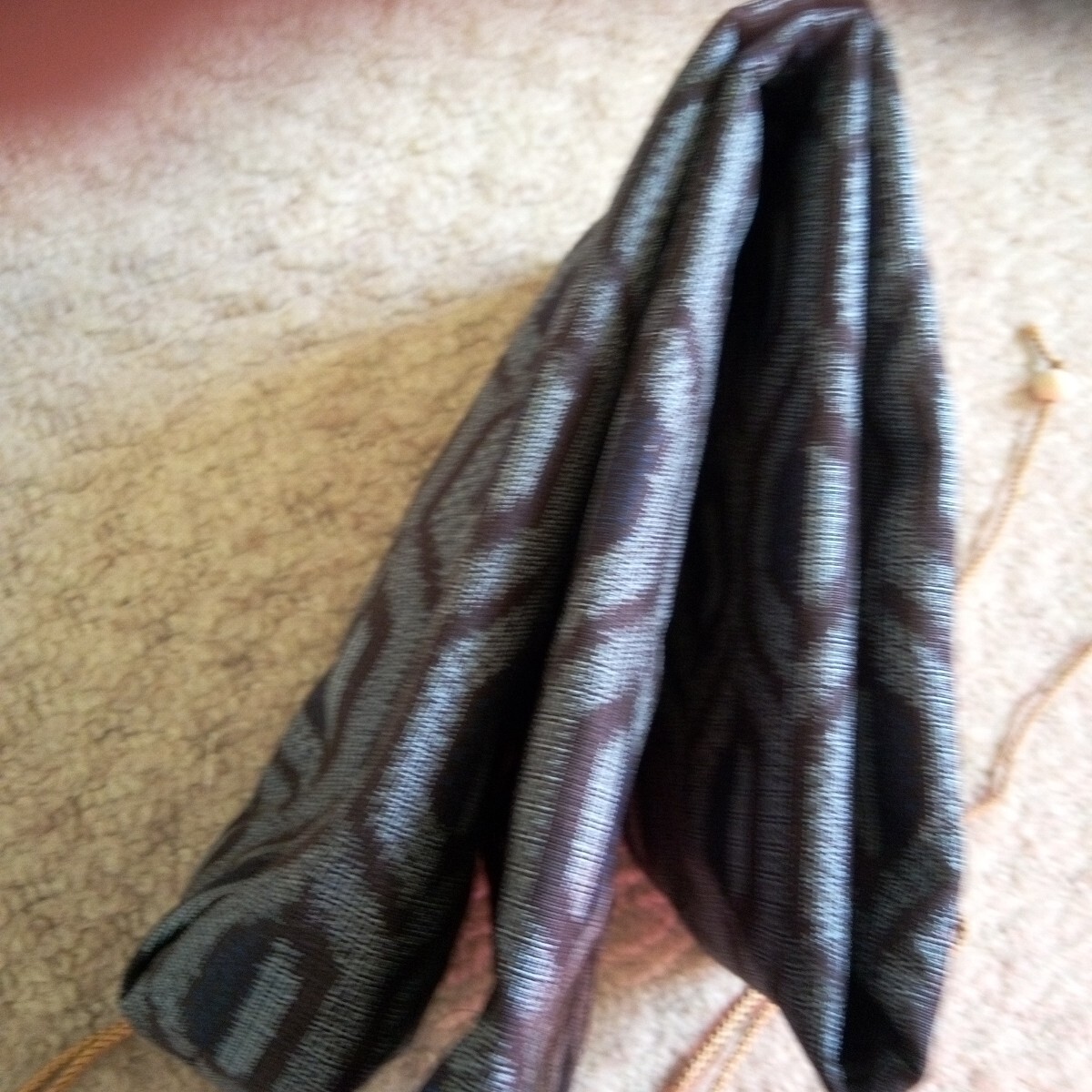 材質 :表 絹 紬茶灰紺色着物地