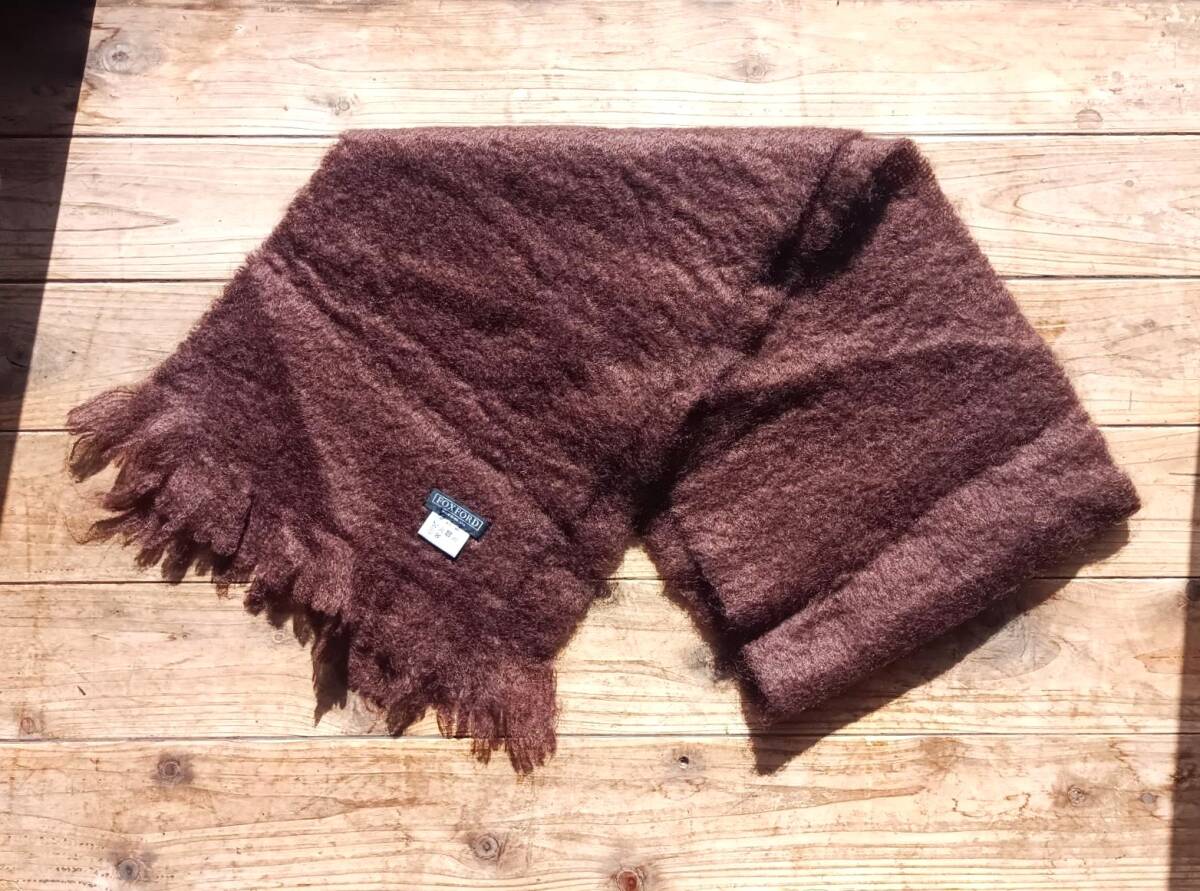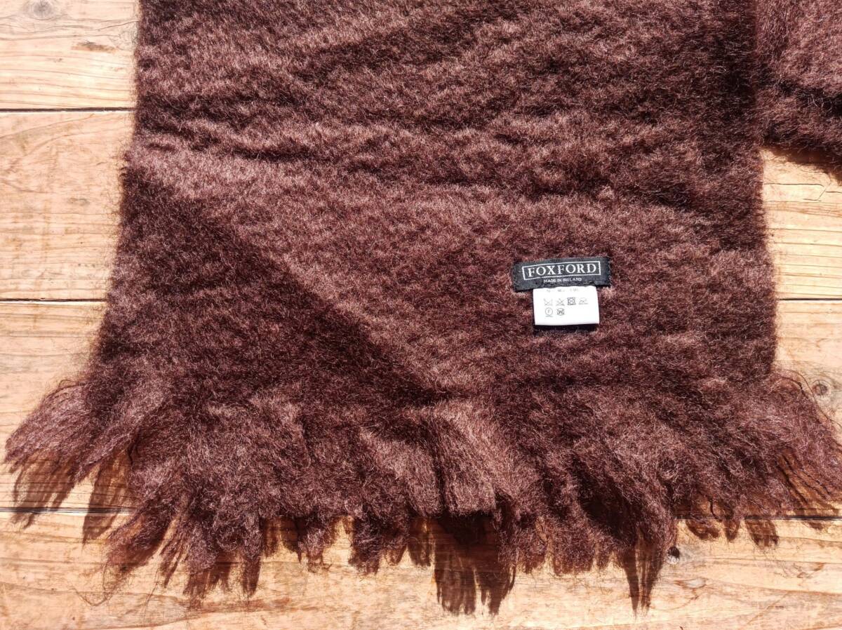 送料無料♪アイルランド製 FOXFORD モヘア混ウールマフラー 31×184㎝ ダークブラウン 65%モヘア30%ウール mohair フォックスフォード 美品