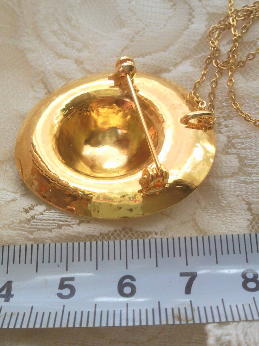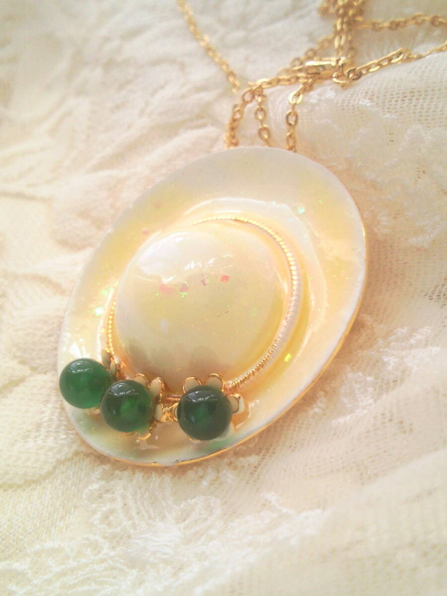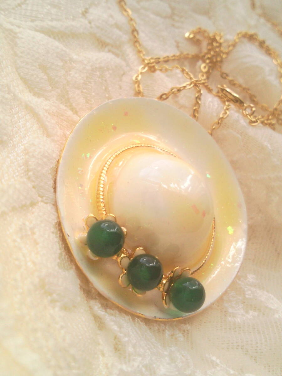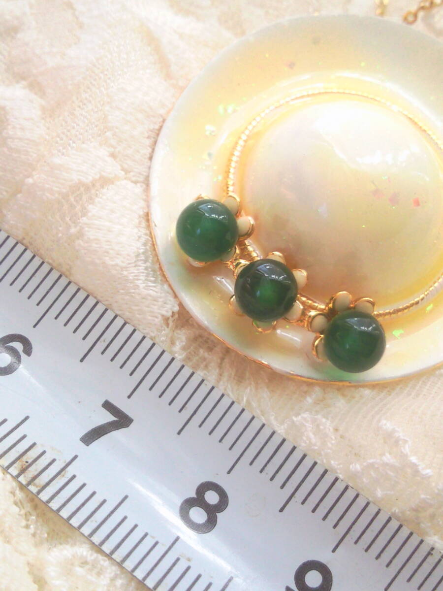 可愛い♪翡翠の帽子ネックレス●緑翠玉3珠ペンダント●昭和レトロ●ブローチ兼用パワージュエリー年代物ヴィンテージ品アンティーク●送無