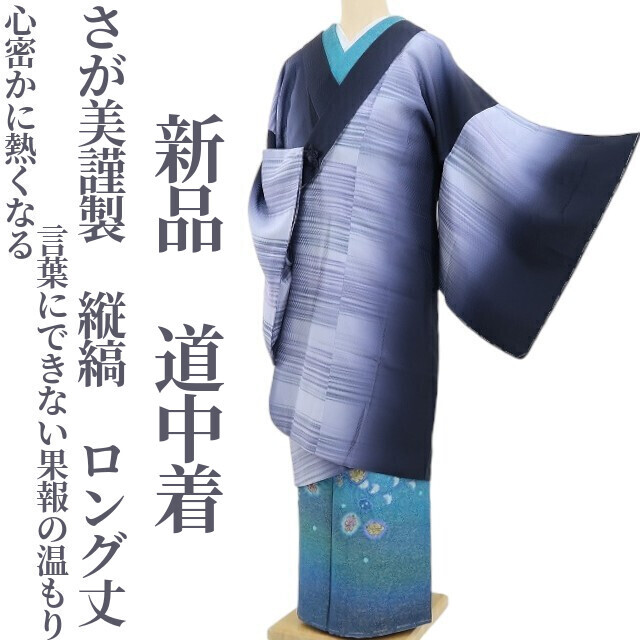 tomihisa 新品 さが美謹製 縦縞 着物“心密かに熱くなる言葉にできない果報の温もり”正絹 仕付け糸付 ロング丈 道中着 4856