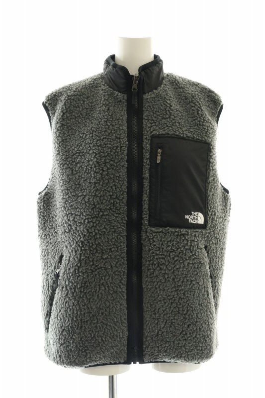 ザノースフェイス THE NORTH FACE リバーシブルエクストリームパイルベスト ボア ジップアップ ロゴ刺繍 XS グレー 黒 ブラック NP72431 /DO ■OS メンズ