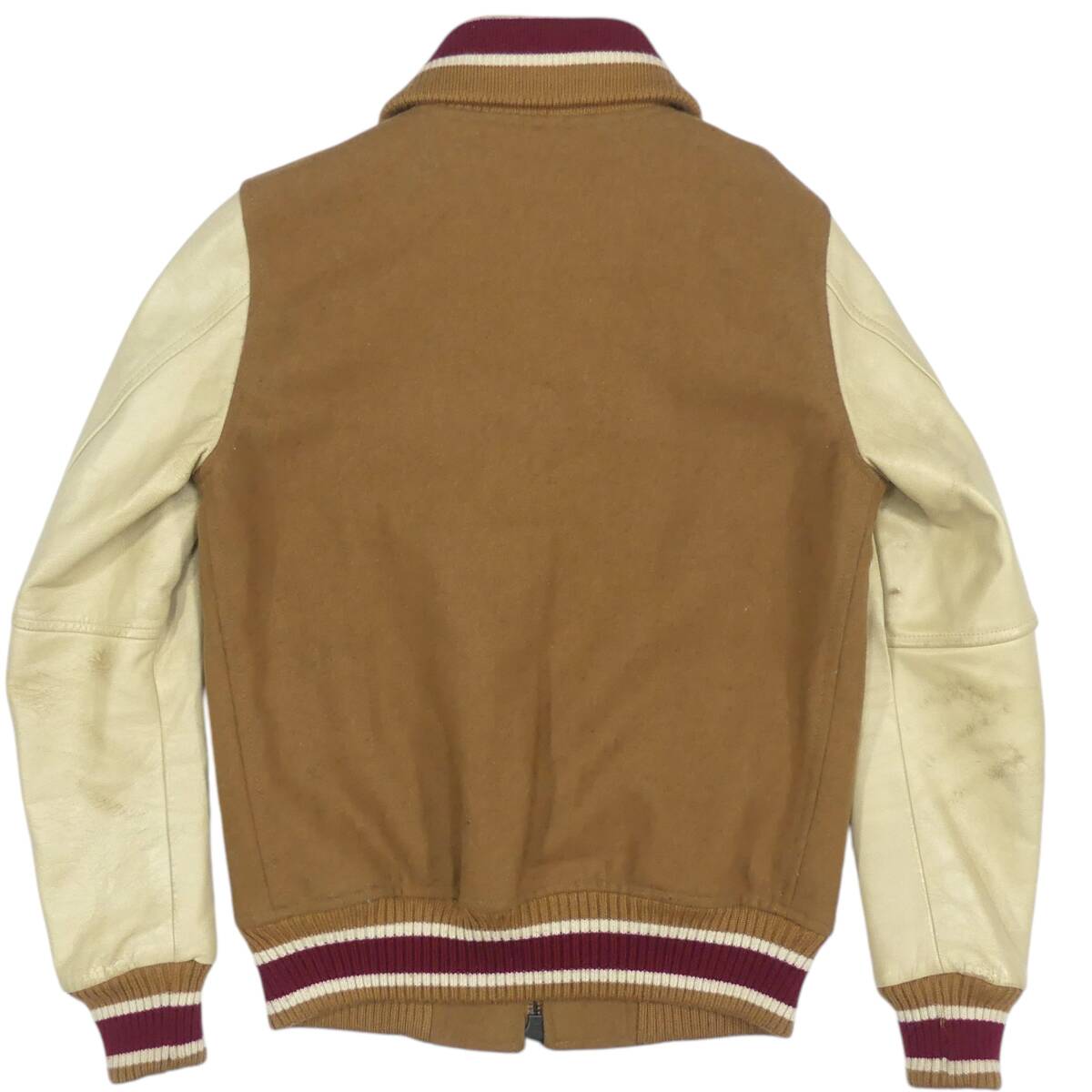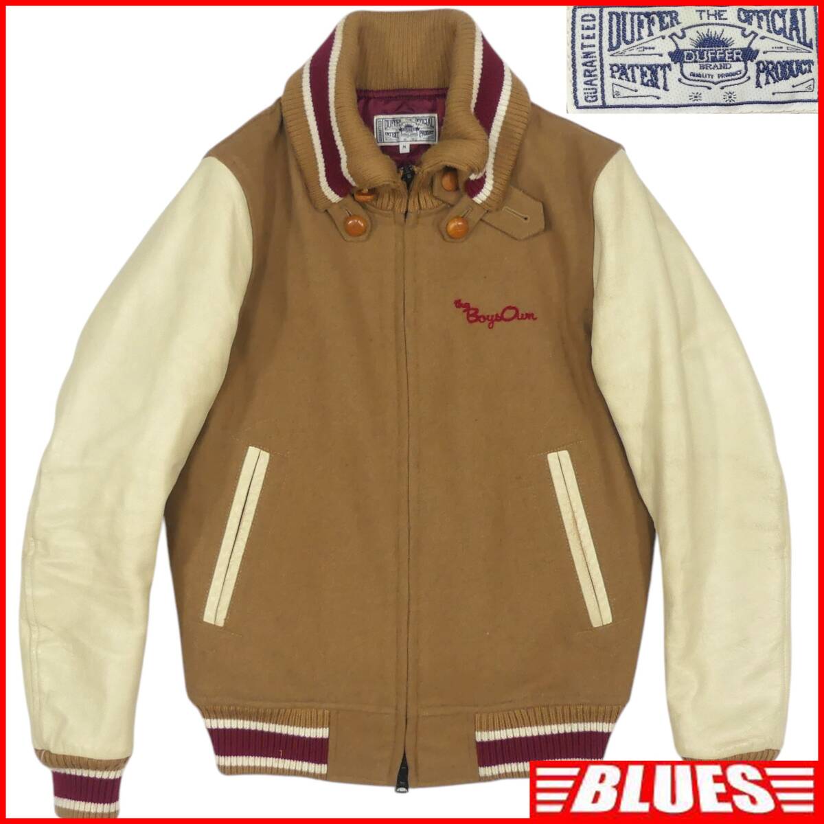 即決★DUFFER★メンズ M レザーアームスタジャン ダファー 茶 キャメル 本革 ブルゾン 本皮 ジャンパー 革ジャン