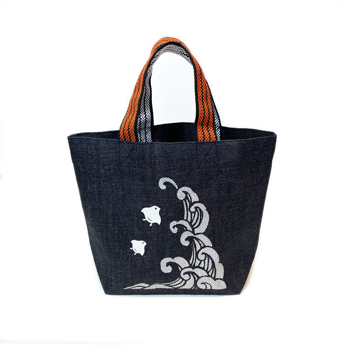 デニムランチトート 浪に千鳥 倉敷デニムバッグ ランチバッグ デニムミニバッグ デニムミニトートバッグ 真田紐 倉敷屋 ダルマ柄