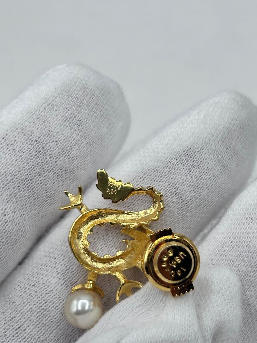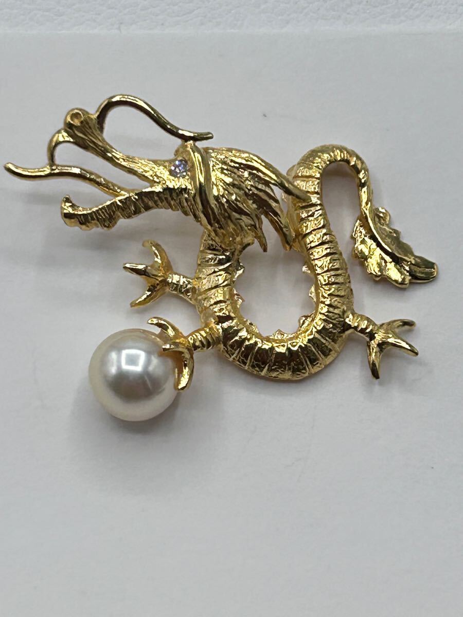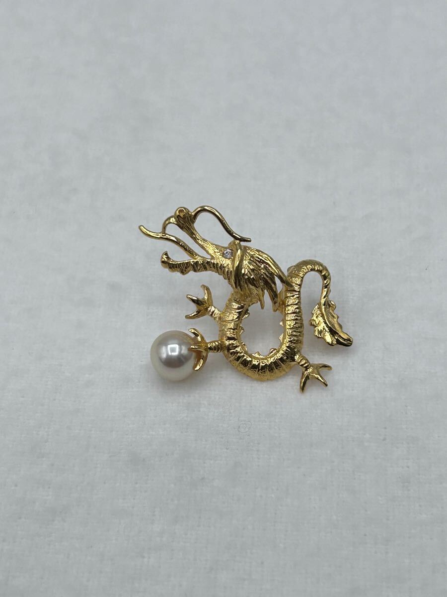 国産アコヤ真珠 シルバーピンブローチ 6ミリUP 龍モチーフ ダイヤ入り を出品致します