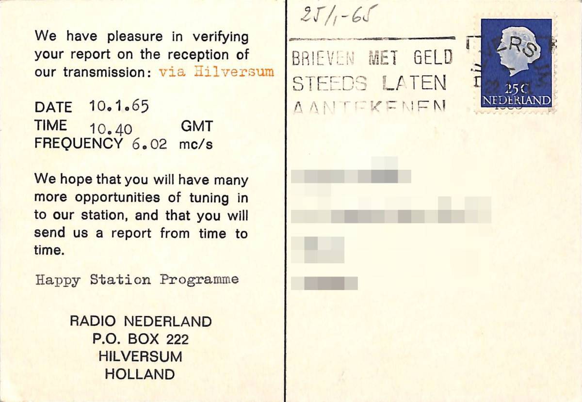 【商品名】・・・RADIO NEDERLAND(★RN・ラジオ・ネダーランド)のベリカード。 【コメント】・・・大変貴重なカリブ海のアンティル諸島・ボネール中継局のベリカードです。 【国名・地名】・・・オランダ領★アンティル諸島・ボネール。 【受信データ】・・・1965年1月10日・SW6020KHZを受信。 【記載事項】・・・受信データ・受信者の住所・氏名が記載。 【状態】・・・シワ、シミ、汚れ、焼け、色あせ等があります。 ■カードの状態は、画像を参考に判断してください。 ■この機会にぜひこのベリカードを貴方のBCLコレクションに加えてください! | |