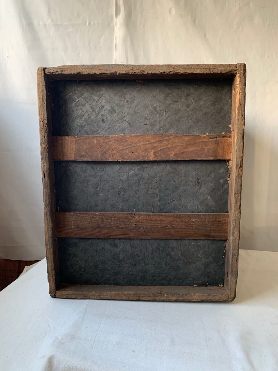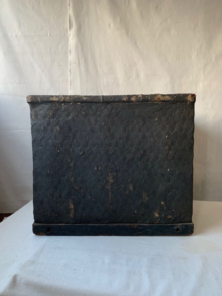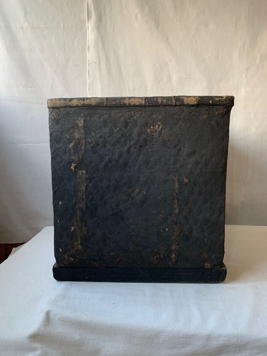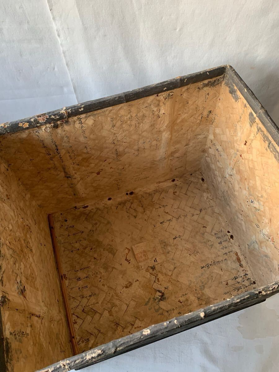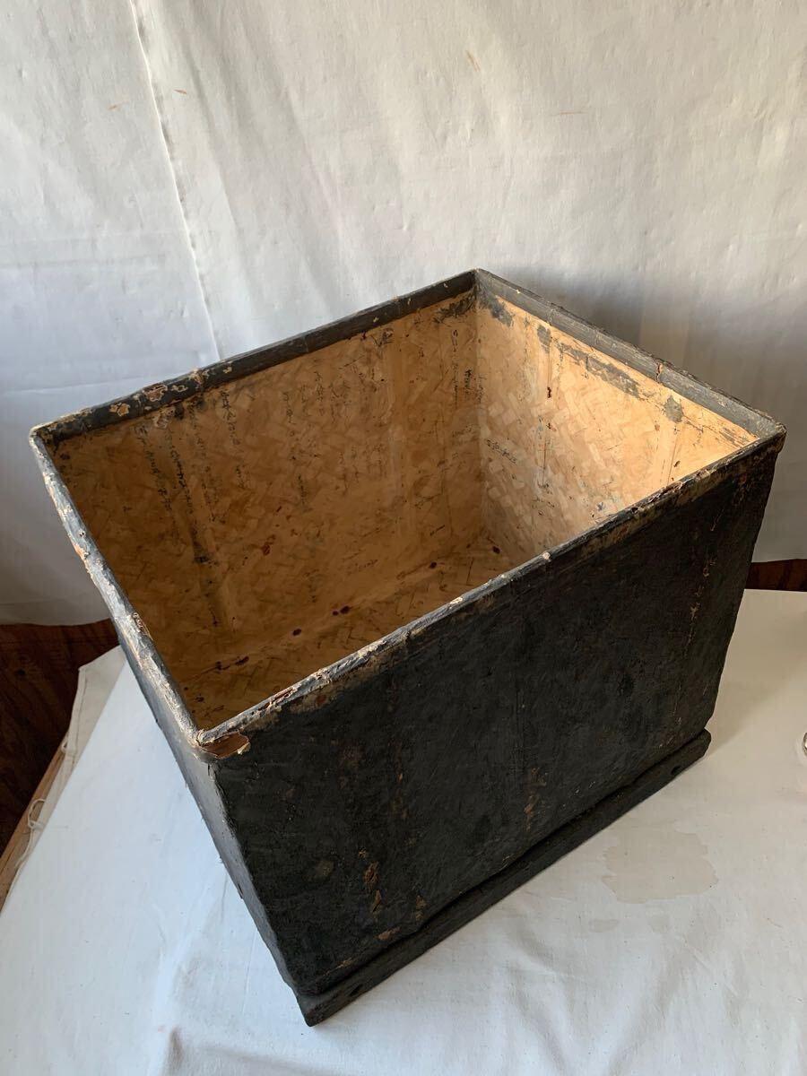 旧家蔵出し品 古い紙が貼られた竹籠です。経年の雰囲気が良く出ており、オブジェや花器などとして、お店のインテリアやお店のディスプレイ、イベント出店時の什器などに使って頂くと素敵だと思います。