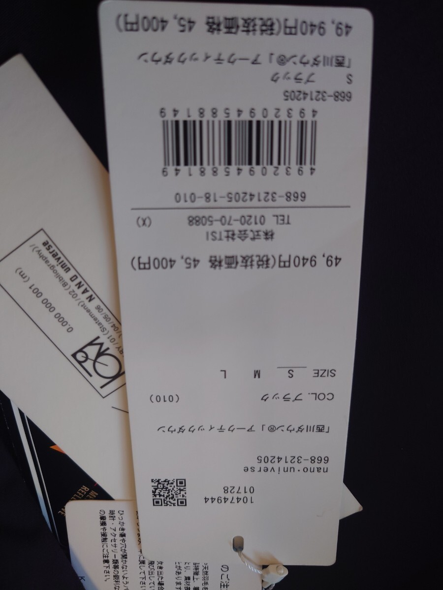 S:着丈 80cm/身幅 58.6cm/肩幅 42cm/袖丈 64cm