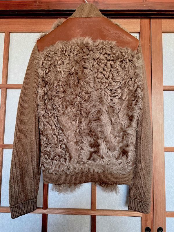 表記サイズ:46 肩幅40身幅44袖丈66着丈60 素材:ラムスキン65%ヴァージンウール20%ゴートスキン15% 定価:434,000円+税 タグ付き未使用