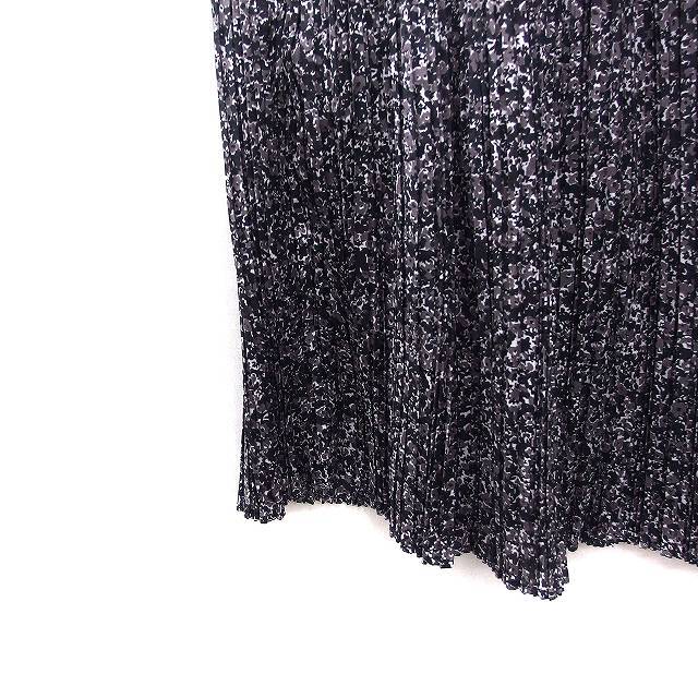 グローバルワーク GLOBAL WORK 小花柄 プリーツ スカート ロング丈 F ブラック 黒 チャコールグレー /FT9 レディース