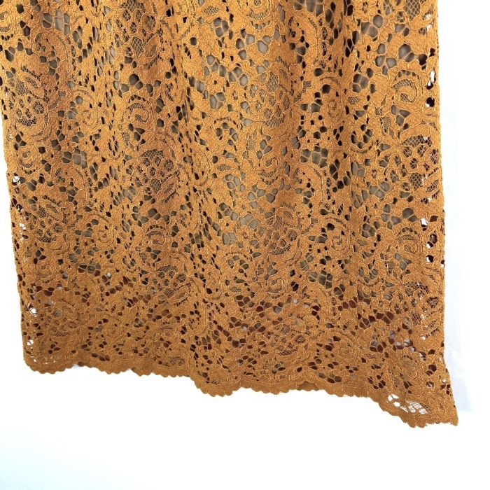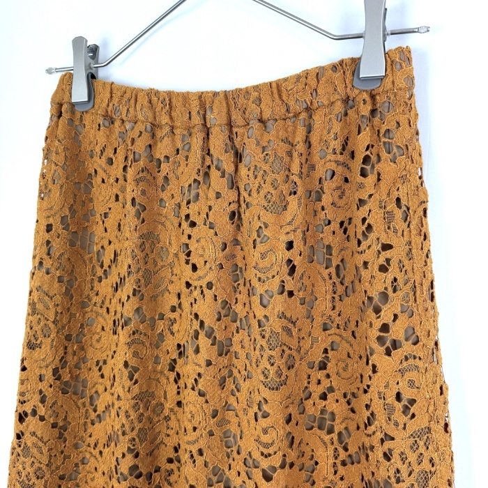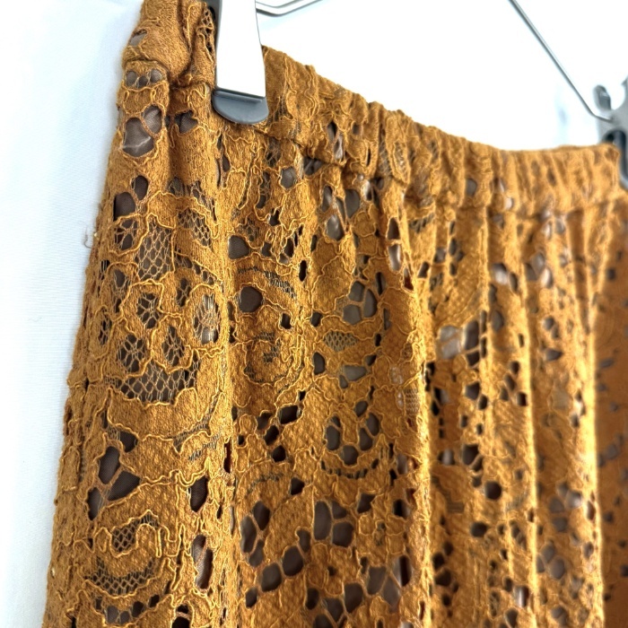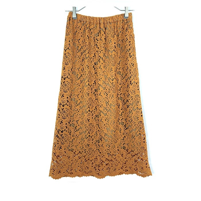 【コメント】 総レースで上品な印象のセミタイトレーススカートです。ウエストゴムはゴムで穿きやすいです。少し毛羽立ちはありますが、気になる汚れはなく全体的に綺麗なお品物です。 |