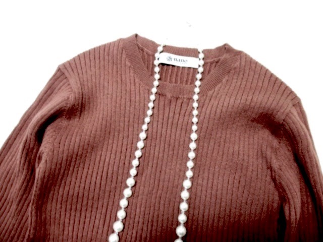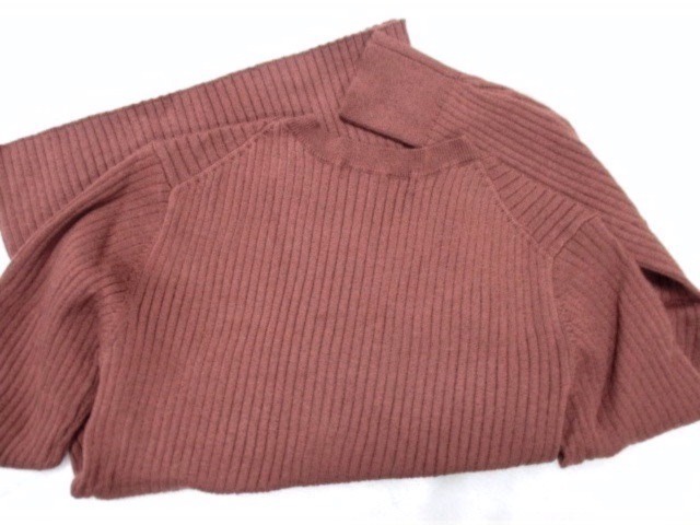 【新品 茶系 クルーネック プルオーバー リブニット F】