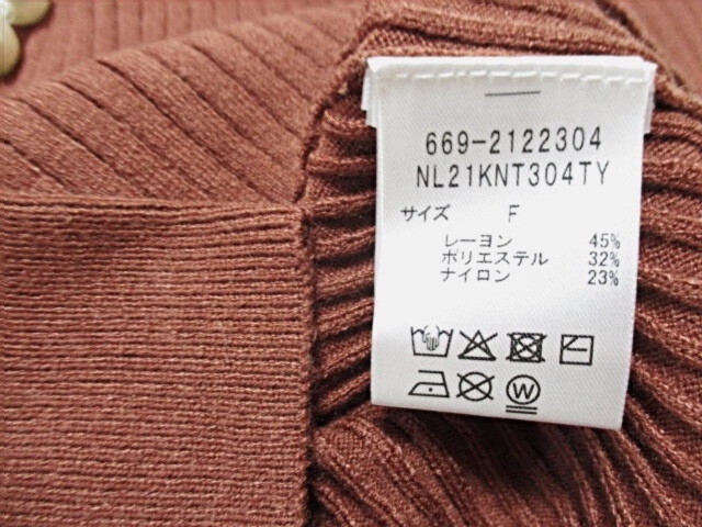 ●お色は茶系です∴*☆* ●元からタグなしですが新品未使用です ●とても柔らかな素材で手洗い可能 ●クルーネック プルオーバーはリブのピッチにこだわり、エレガントかつシックな雰囲気 ●きゅっと詰まったネックライン **☆※下記のサイズを参考に自己判断でお願い致します∴♪ ★1枚の出品ですので 他の小物などは含みません♪ ●色々更新しますので 自己紹介も見て下さい 【記載サイズ F】 (およその目安です誤差はお許し下さい♪) 身肩35 袖60 脇下40×2 着丈58 cm 【素材】 お取り置き 4日間程でしたら 送料変わりますが同梱包可能です♪*☆ ** ∴*☆ ★最安値送料優先のため(ゆうパケット)(ゆうパック)(定形外)などは 規定内まで圧縮して発送します。 圧縮不可の場合は送料変わりますが 対応可能ですので 質問欄からでも連絡お願いいたします | |||