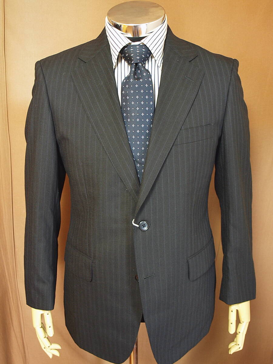 黒地xストライプ柄2ボタンスーツ(A4サイズ)メンズセットアップ