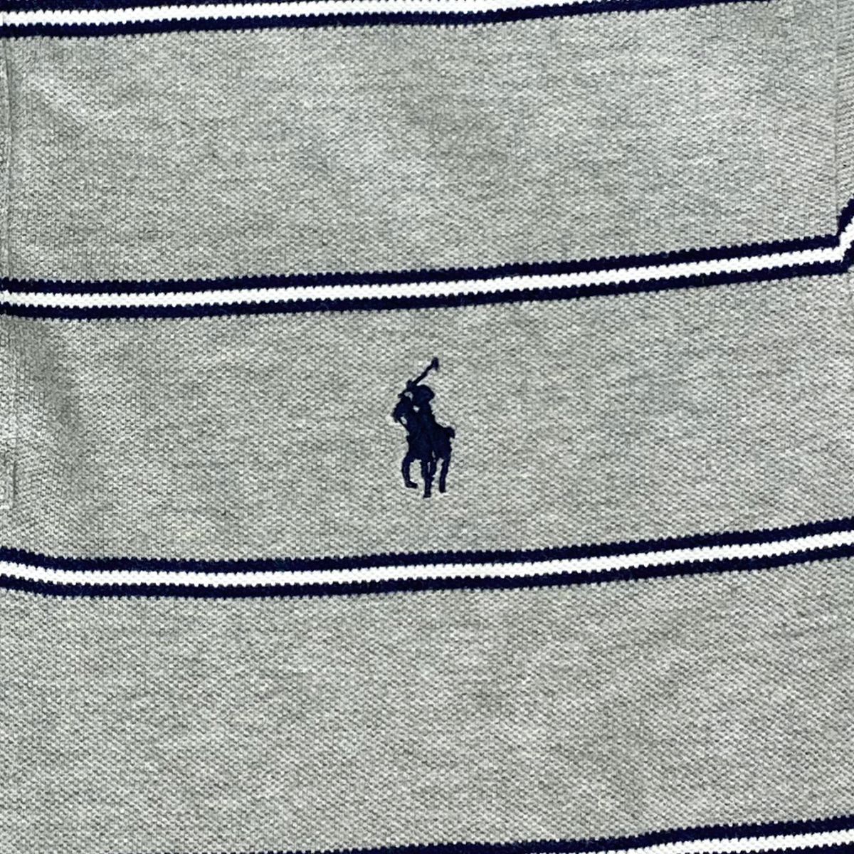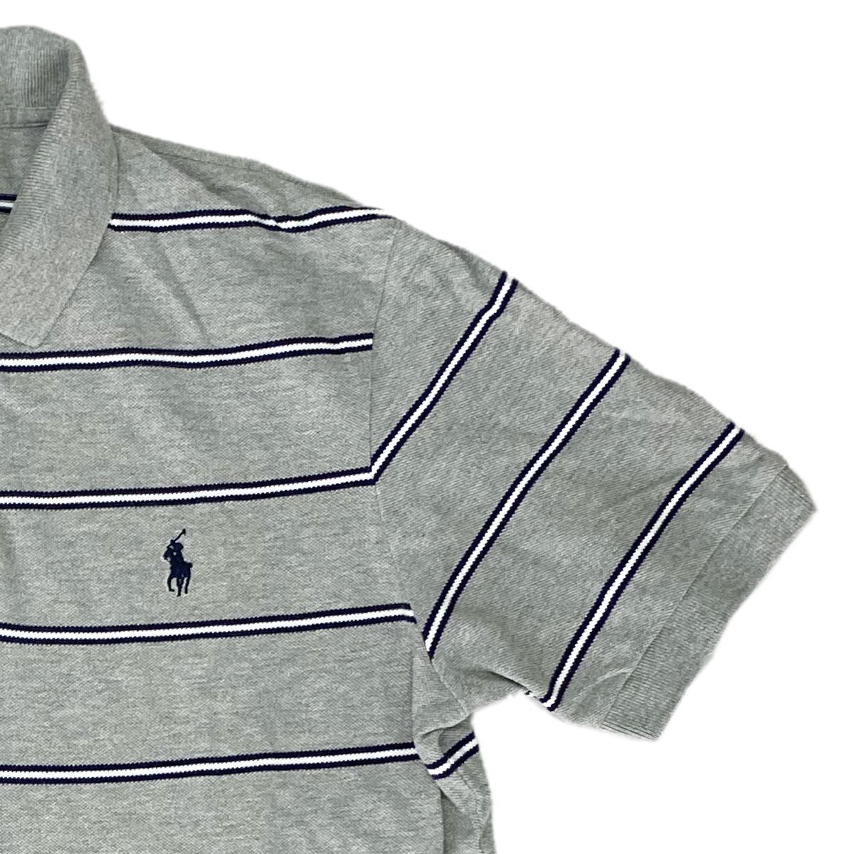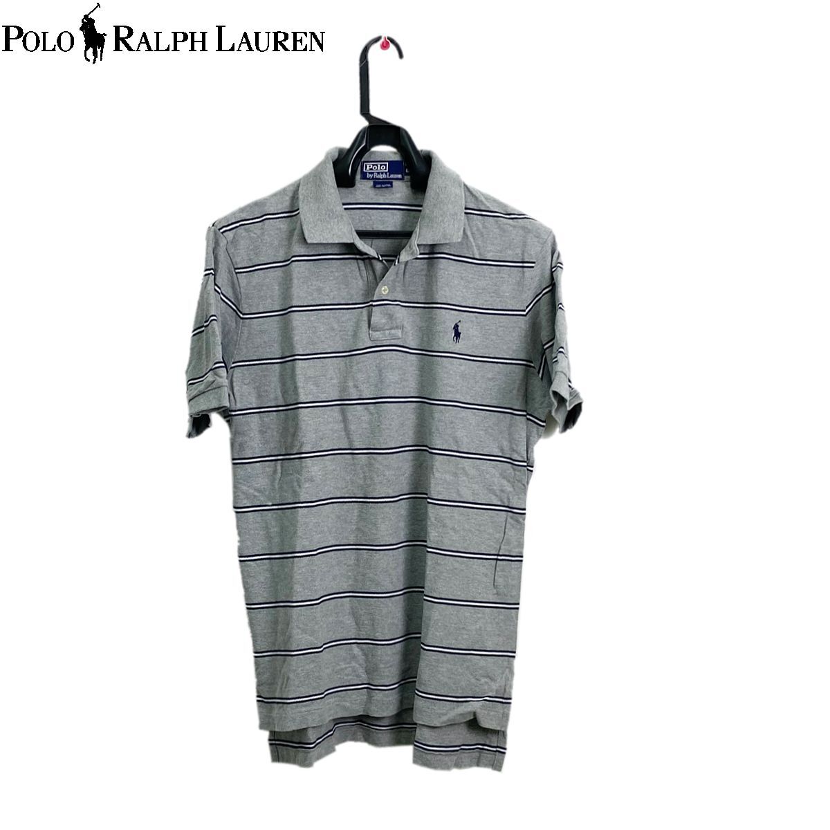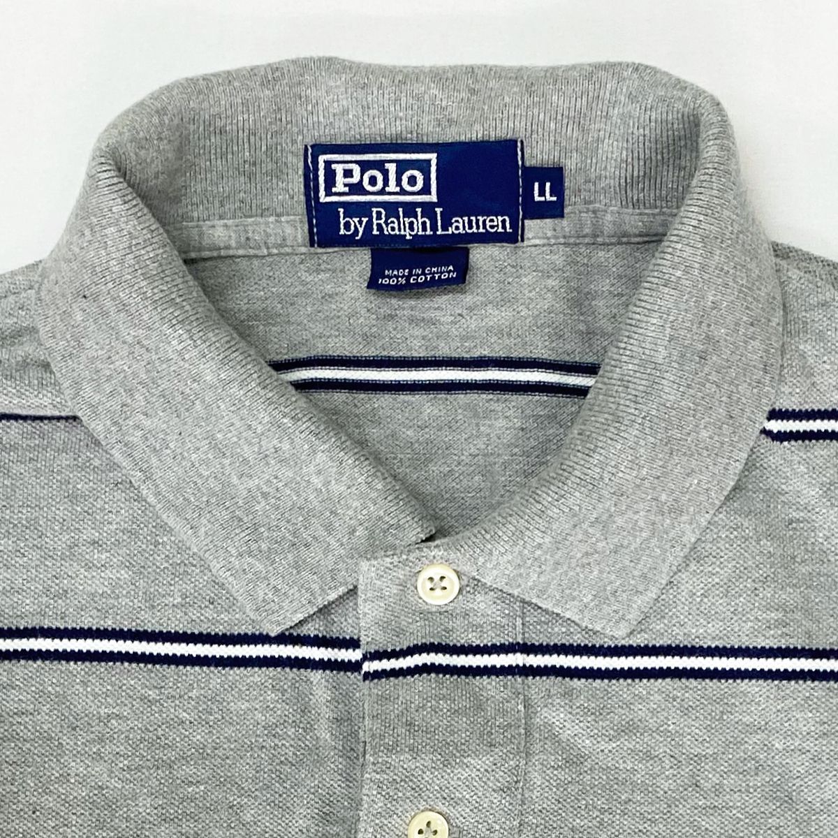 送料無料■程度良好【POLO RALPH LAUREN ポロラルフローレン】ボーダーポロシャツ 半袖 メンズ グレー系 LL
