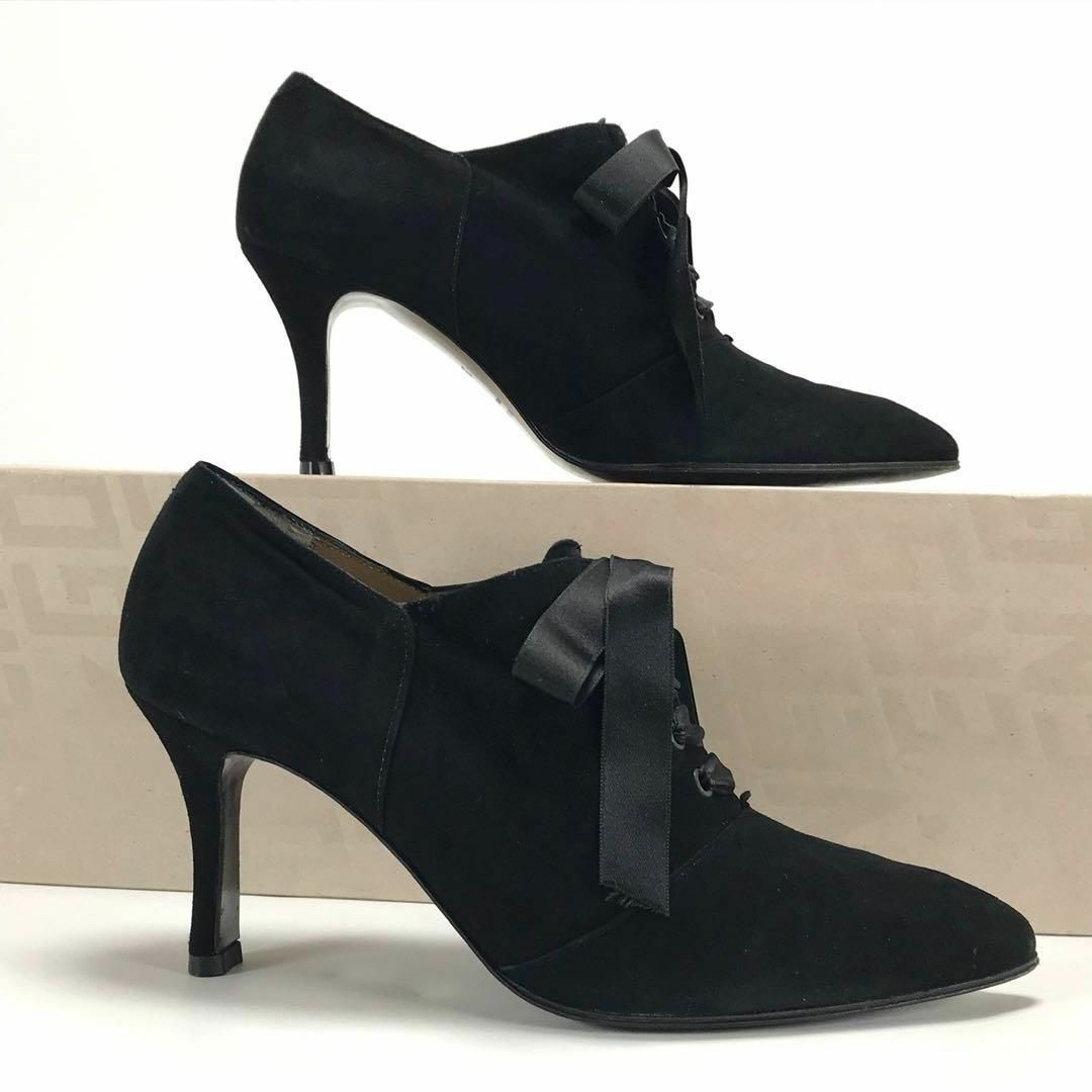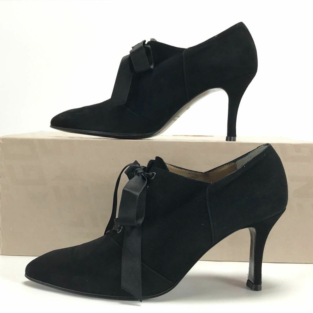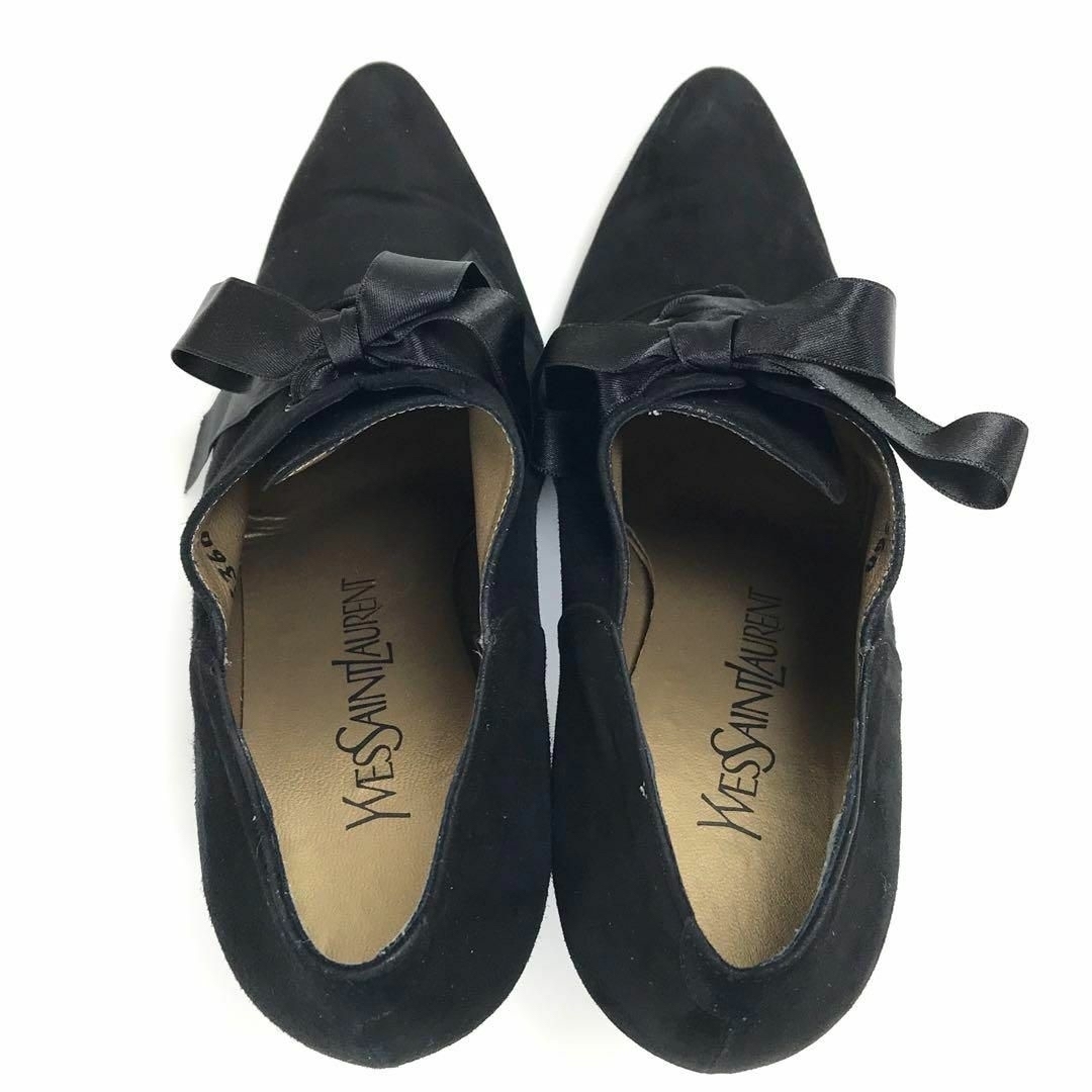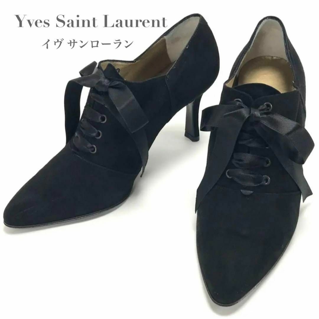 Yves Saint Laurent イヴ サンローラン イブ サンローラン ブーティ ショートブーツ オールレザー 22.5cm ブラック 黒 リボン レディース