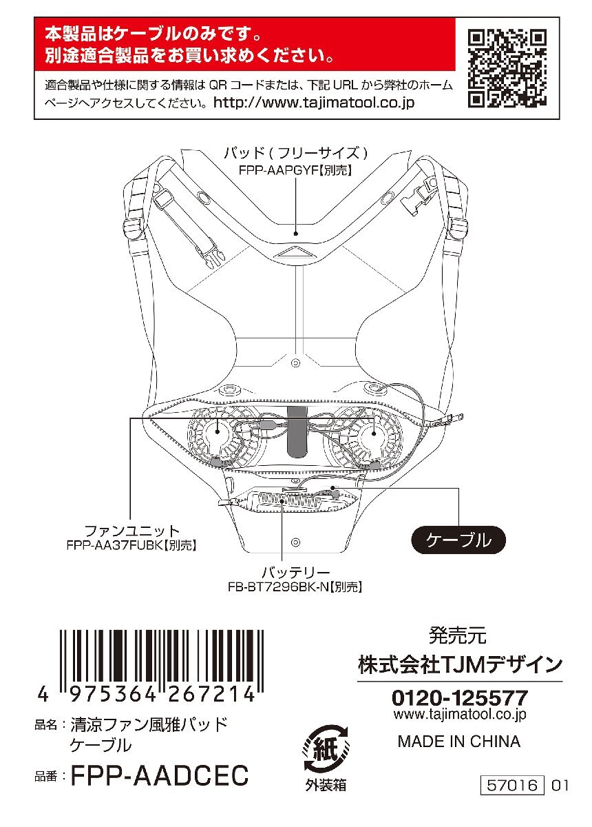タジマ tajima 清涼ファン風雅パッド ケーブル FPP-AADCEC |