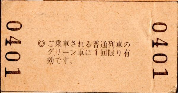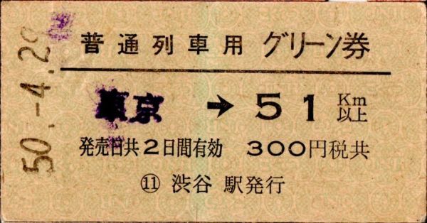 A型券 普通列車用グリーン券 東京→51km以上 300円 渋谷駅発行 検札印