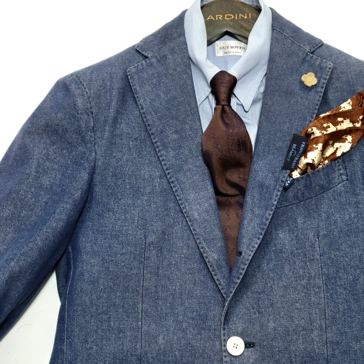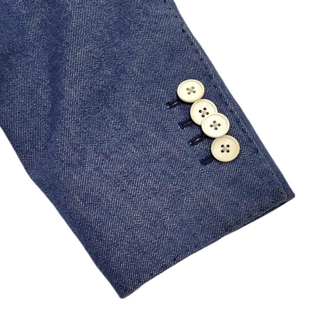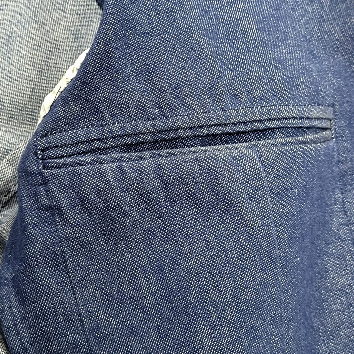 ラルディーニのデニムコットン、アンコン テーラードジャケットです。色はライトネイビー、ブラウンスラックスと合わせれば、イタリア的 アズーロエマローネ コーデが完成です。カジュアル、オフィス、着まわしがききます。大変お洒落です。超高級なイタリア製、美シルエット。15回程度利用、自宅保管品、美品に近い部類かと思います。
