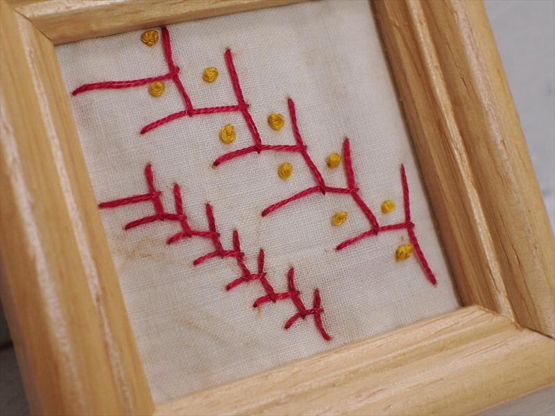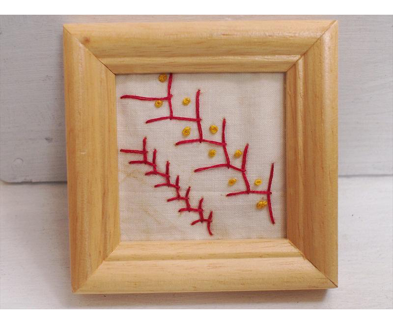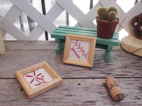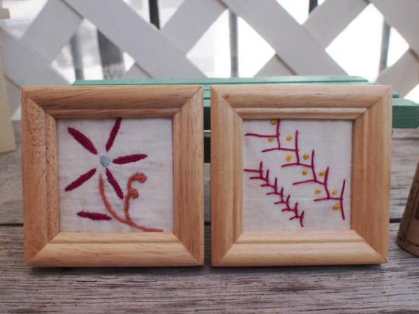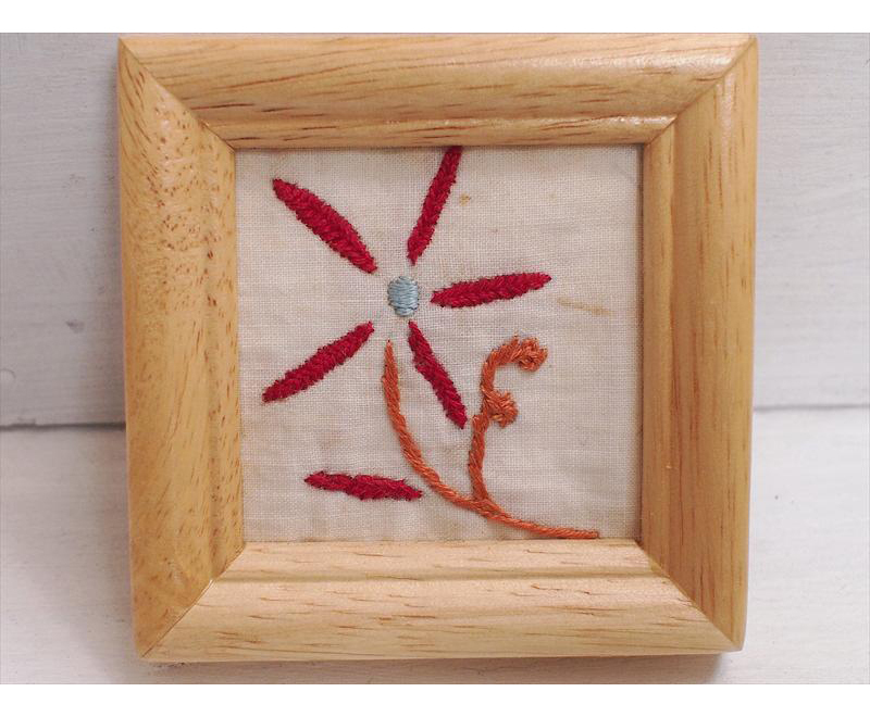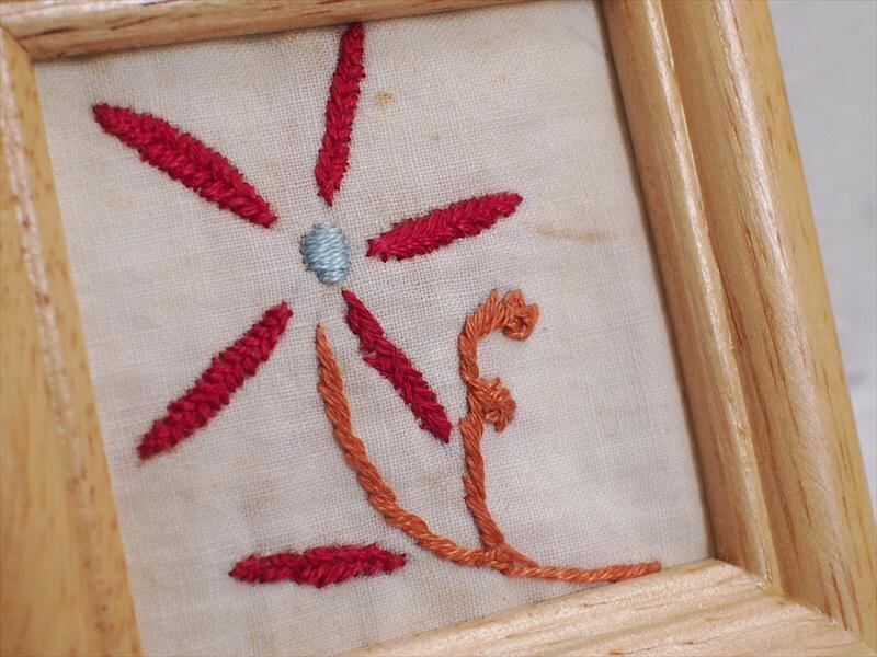 アンティーク雑貨*古い刺繍入りミニ額2個セット・A☆壁掛け飾りインテリアディスプレイ