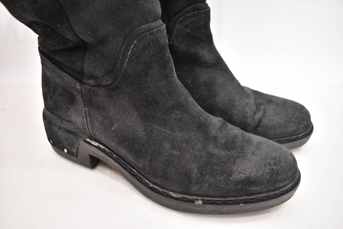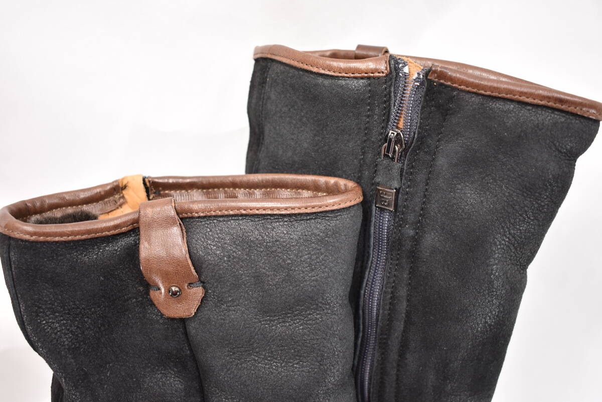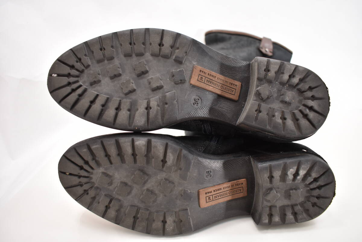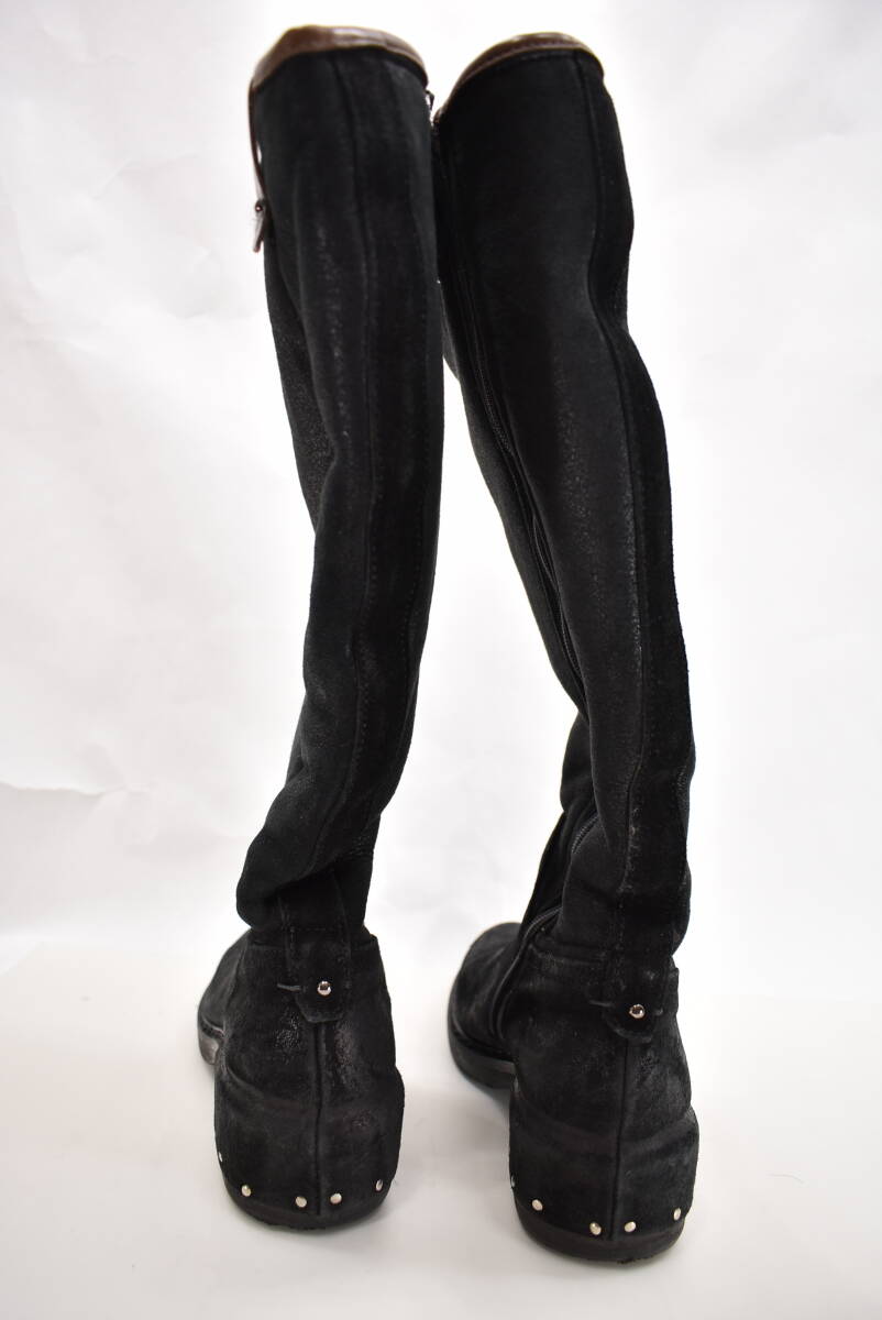 【ALBERTO FERMANI】イタリア製ムートンロングレザーブーツ36黒ヌバックリアル本革