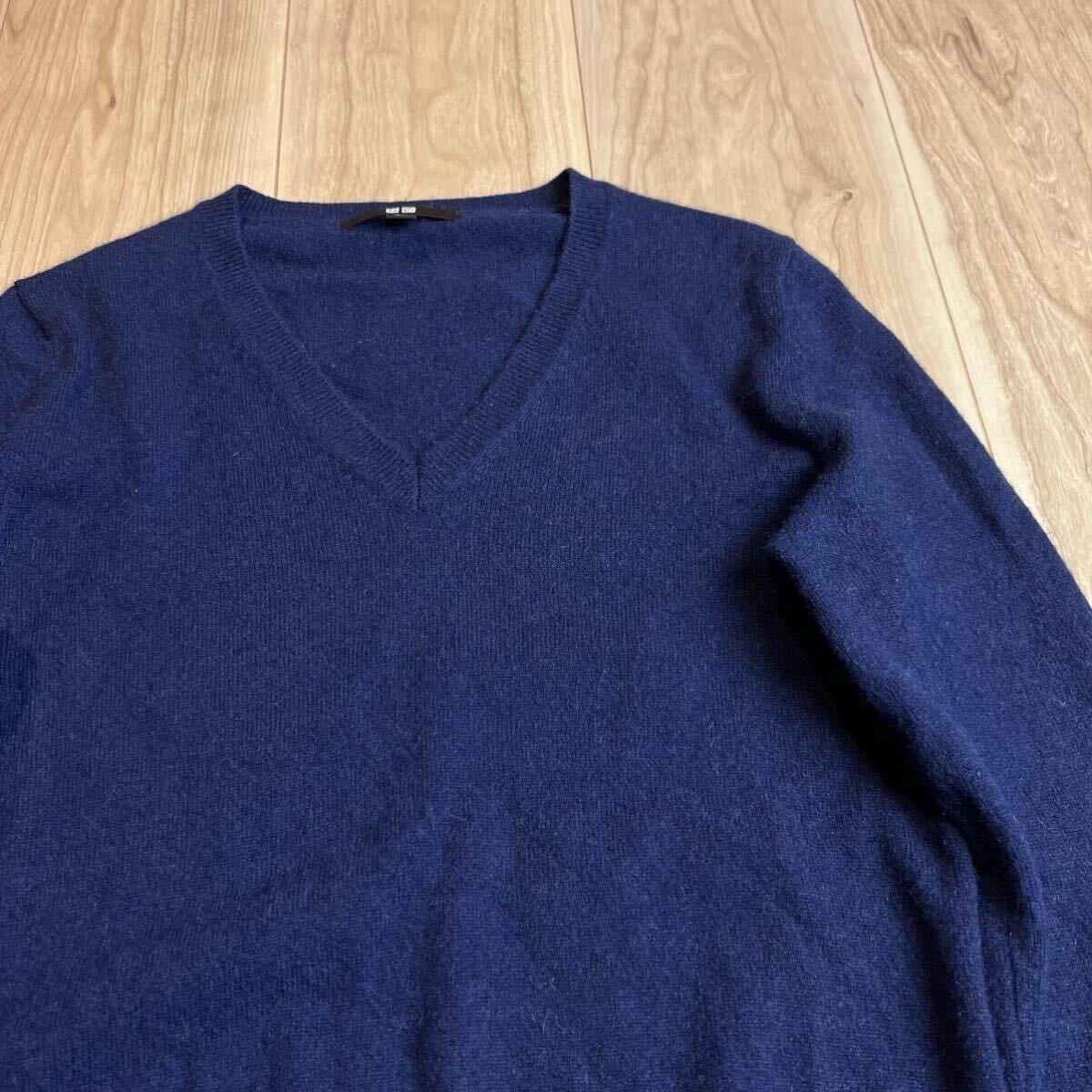 【送料360円】カシミア100% UNIQLO ユニクロ カシミヤ ニット セーター 長袖 サイズS Vネック ネイビー レディース R-3306