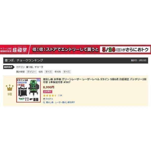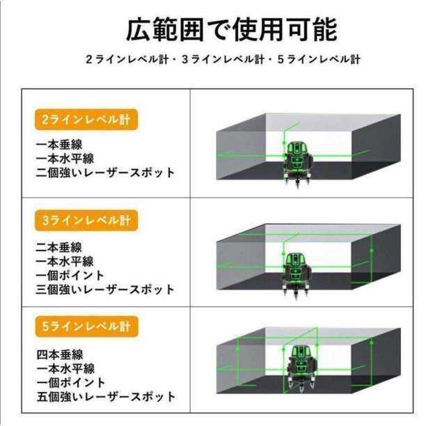 レーザー墨出し器 5ライン グリーン水平器 4方向大矩照射 自動補正機能 高輝度 照射【バッテリー2個付き】 (本体+バッテリー2個)