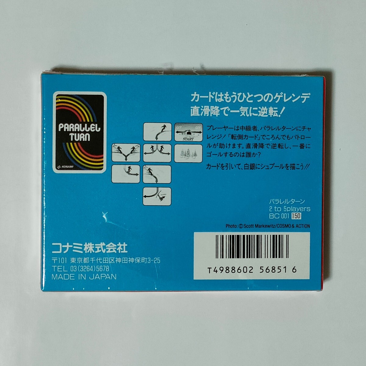 カードはもうひとつのゲレンデ直滑降で一気に逆転! プレーヤーは中級者、パラレルターンにチャレンジ!「転倒カード」でころんでもパトロールが助けます。直滑降で逆転し 、一番にゴールするのは誰か?