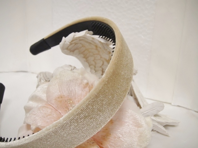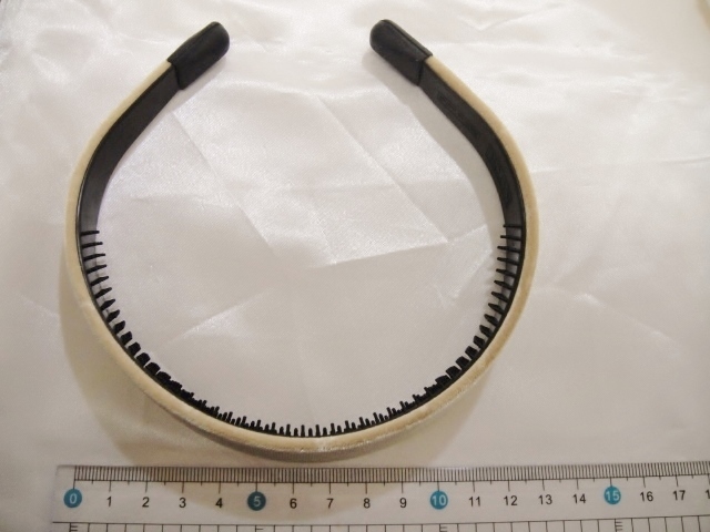 ♪ 新品 カチューシャ 日本製『高品質/頭が痛くならない/幅広/平/シルクベロア/パールベージュ』♪