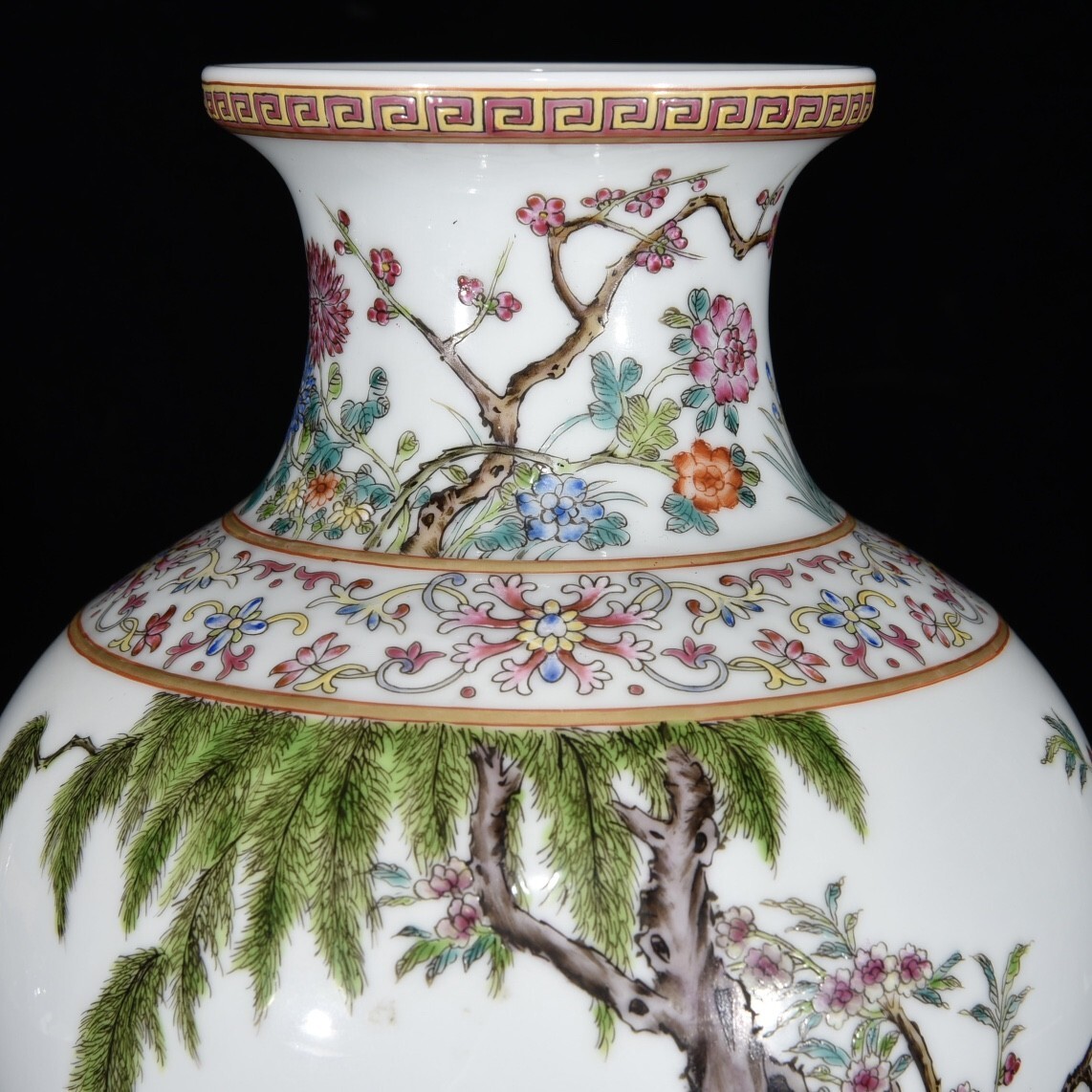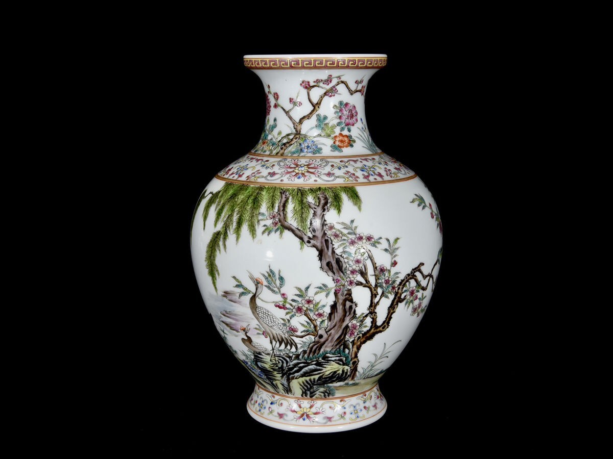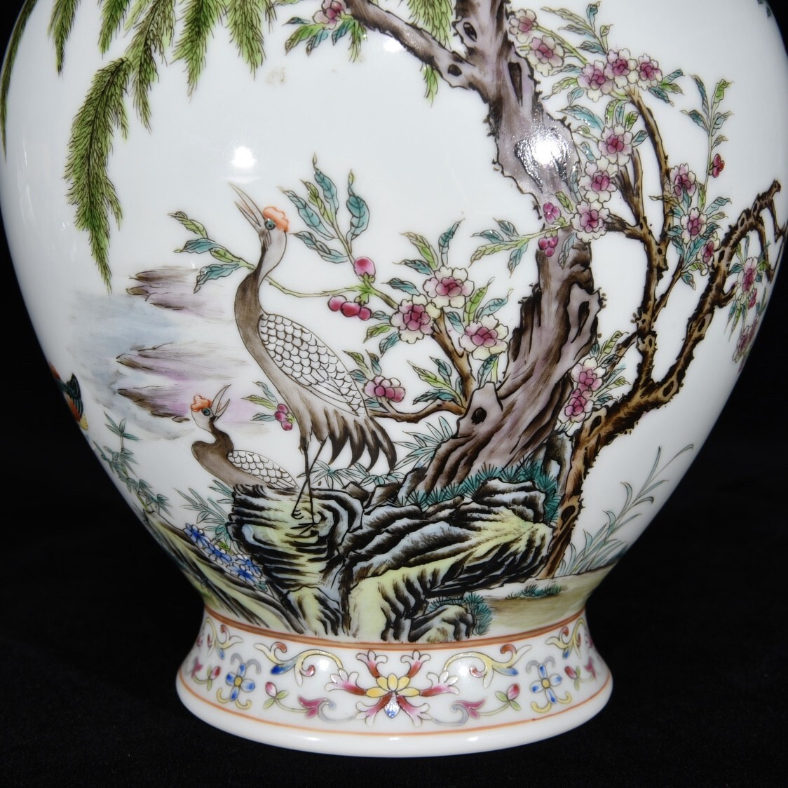 【瓏】陶磁器 粉彩花鳥松鶴紋瓶 大清雍正年製 染付 置物擺件 古美術 陶芸 骨董品 蔵出