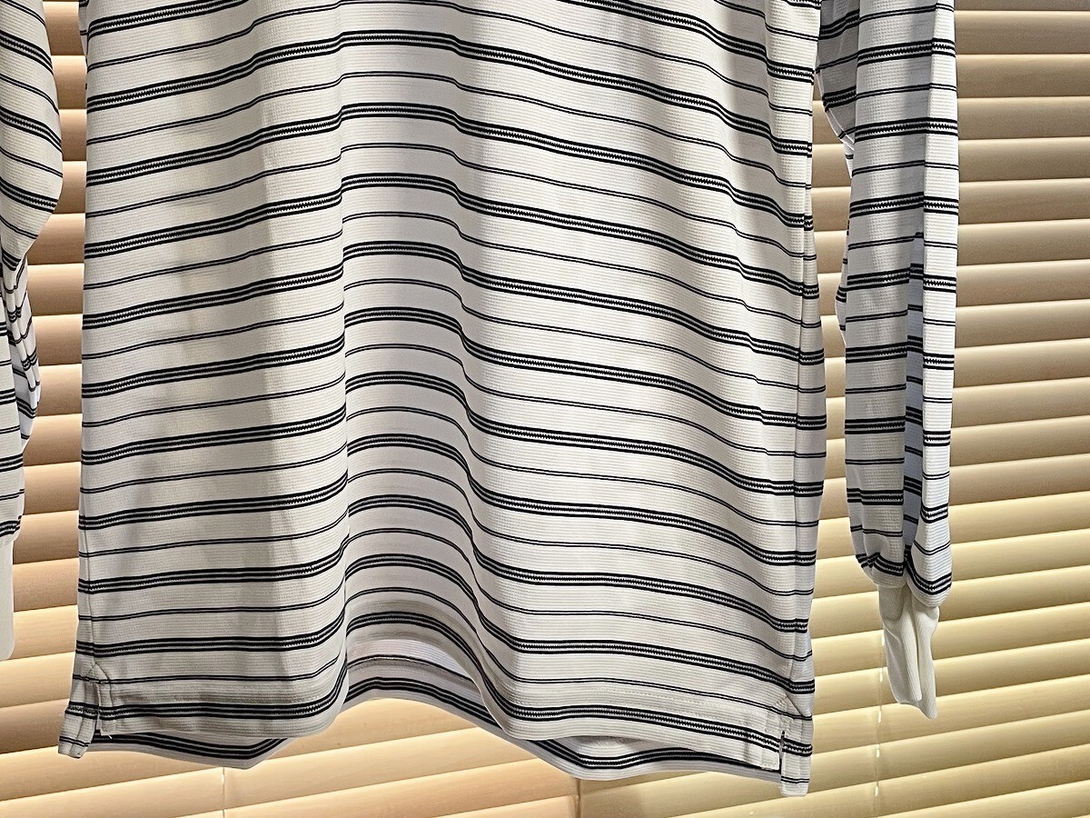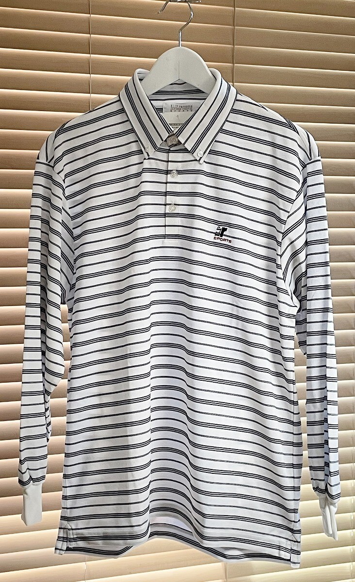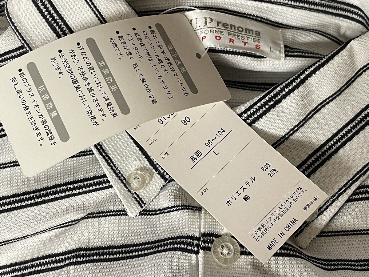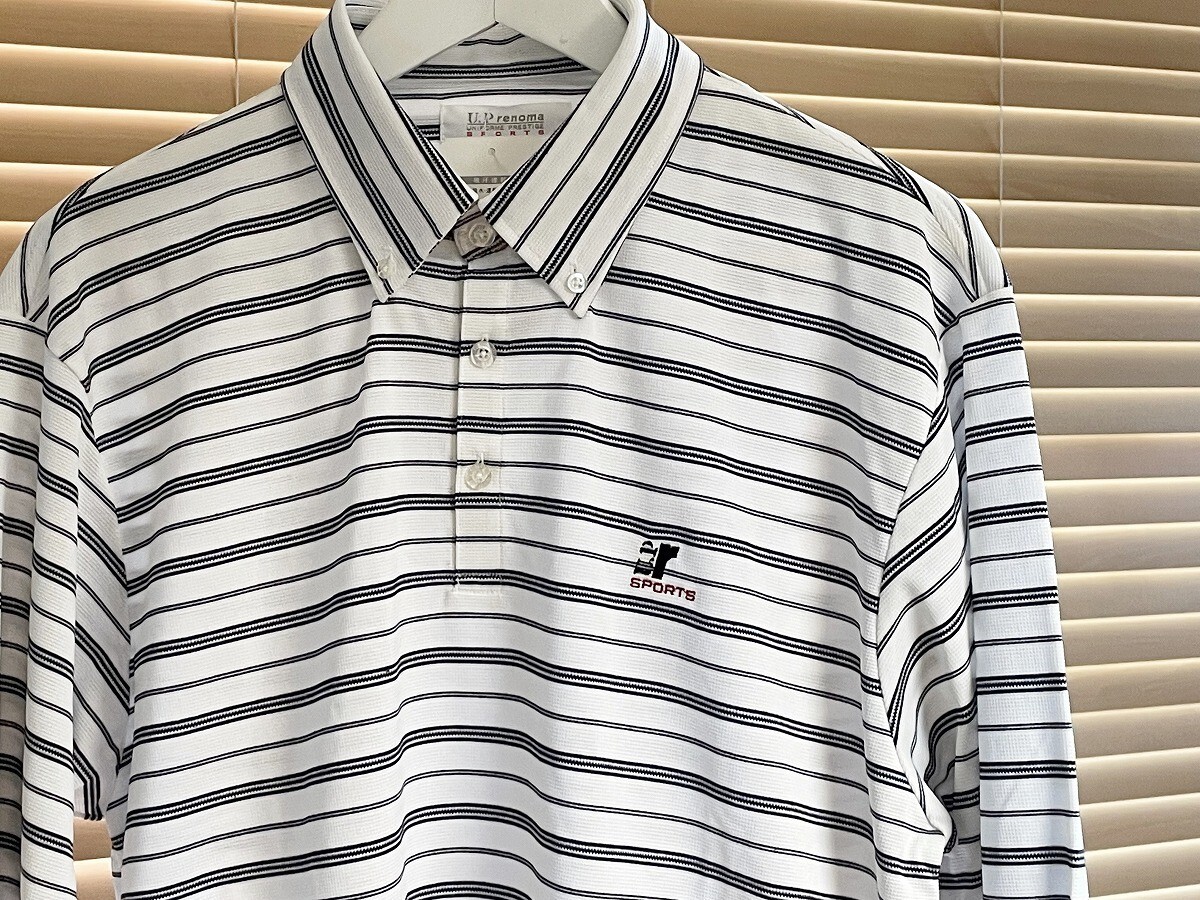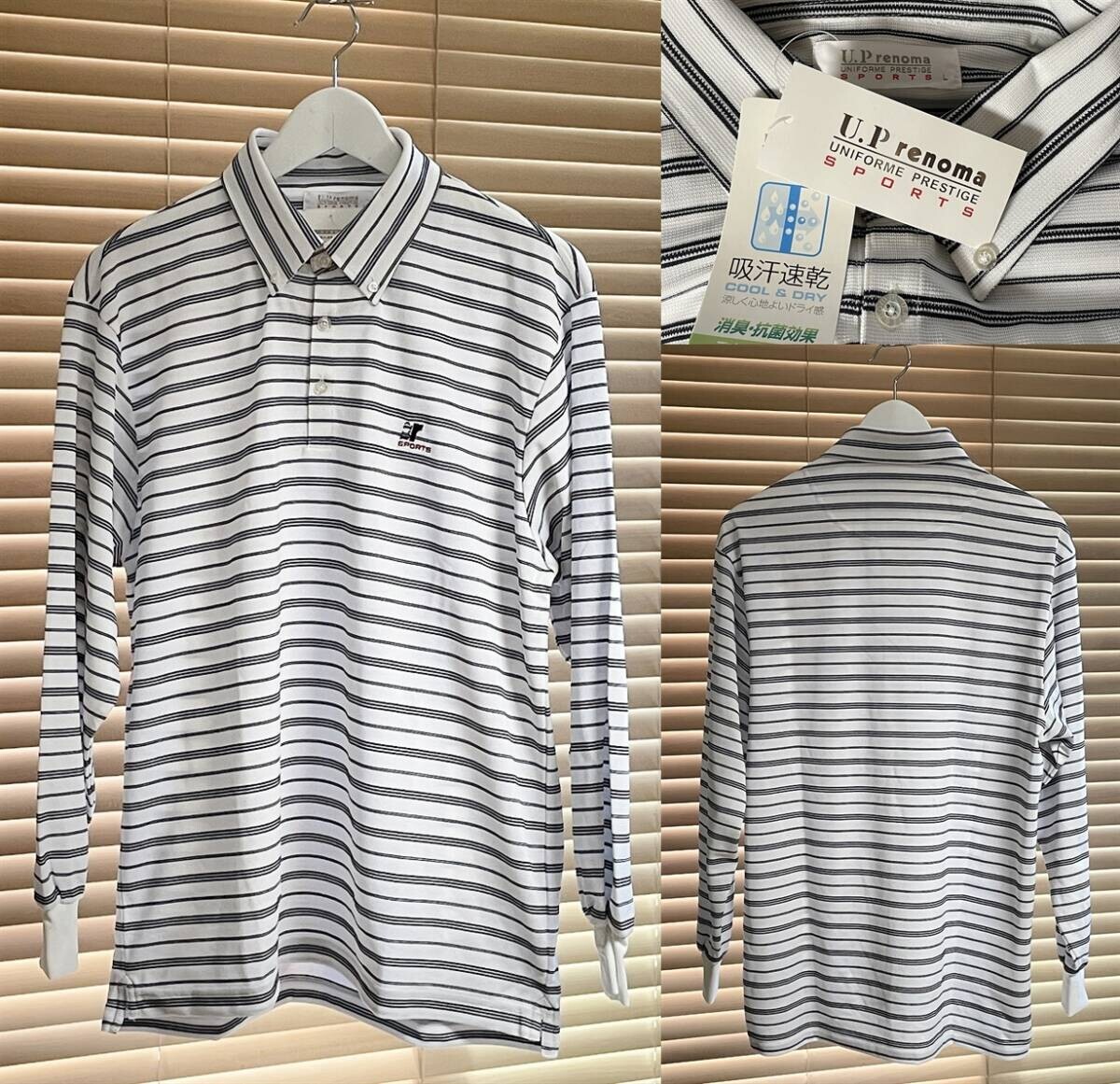 【新品 激安1点のみ 国内正規品】U.P renoma SPORTS ユーピー レノマ スポーツ コットンポリ 吸汗速乾 消臭・抗菌 ボタンダウン ボーダー 長袖 ポロシャツ L ホワイト×ブラック系
