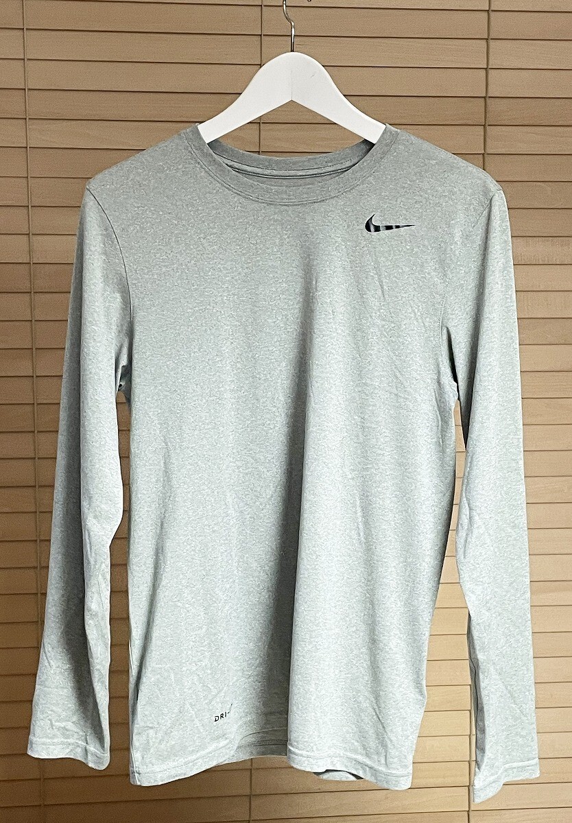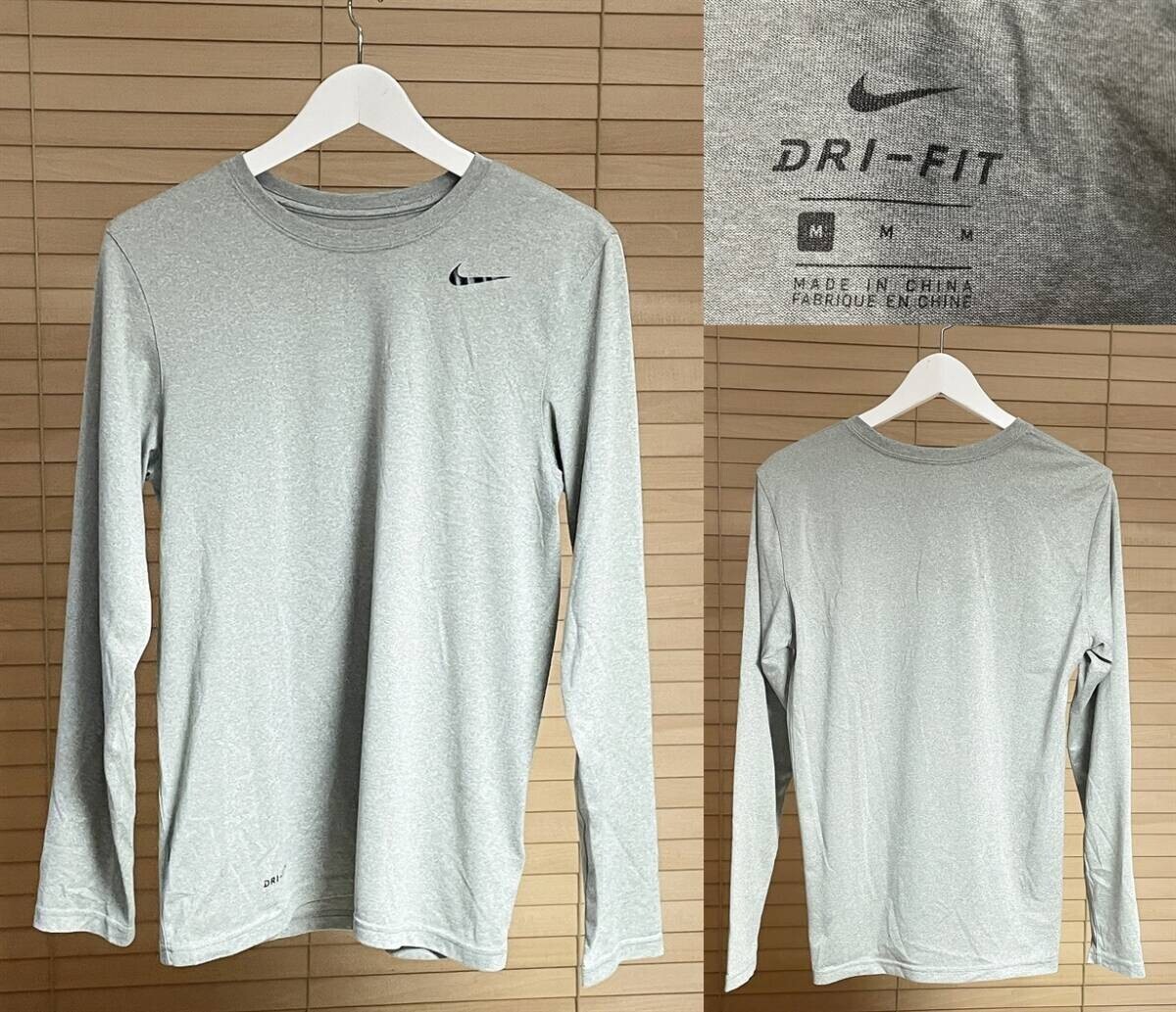 【激安1点のみ 国内正規品】NIKE ナイキ DRI-FIT ドライフィット 速乾 ロゴ 長袖 シャツ Tシャツ ロンT M ポリエステル100% グレー系