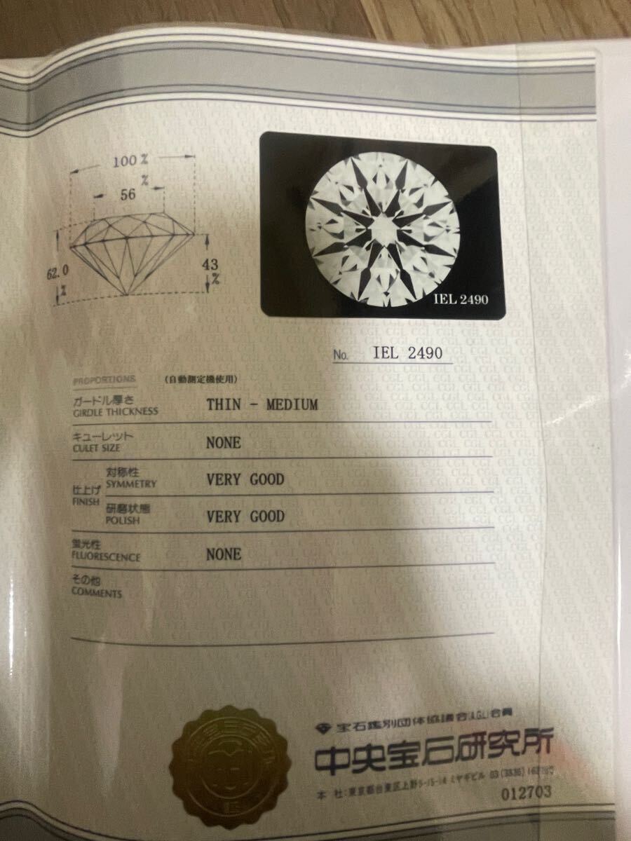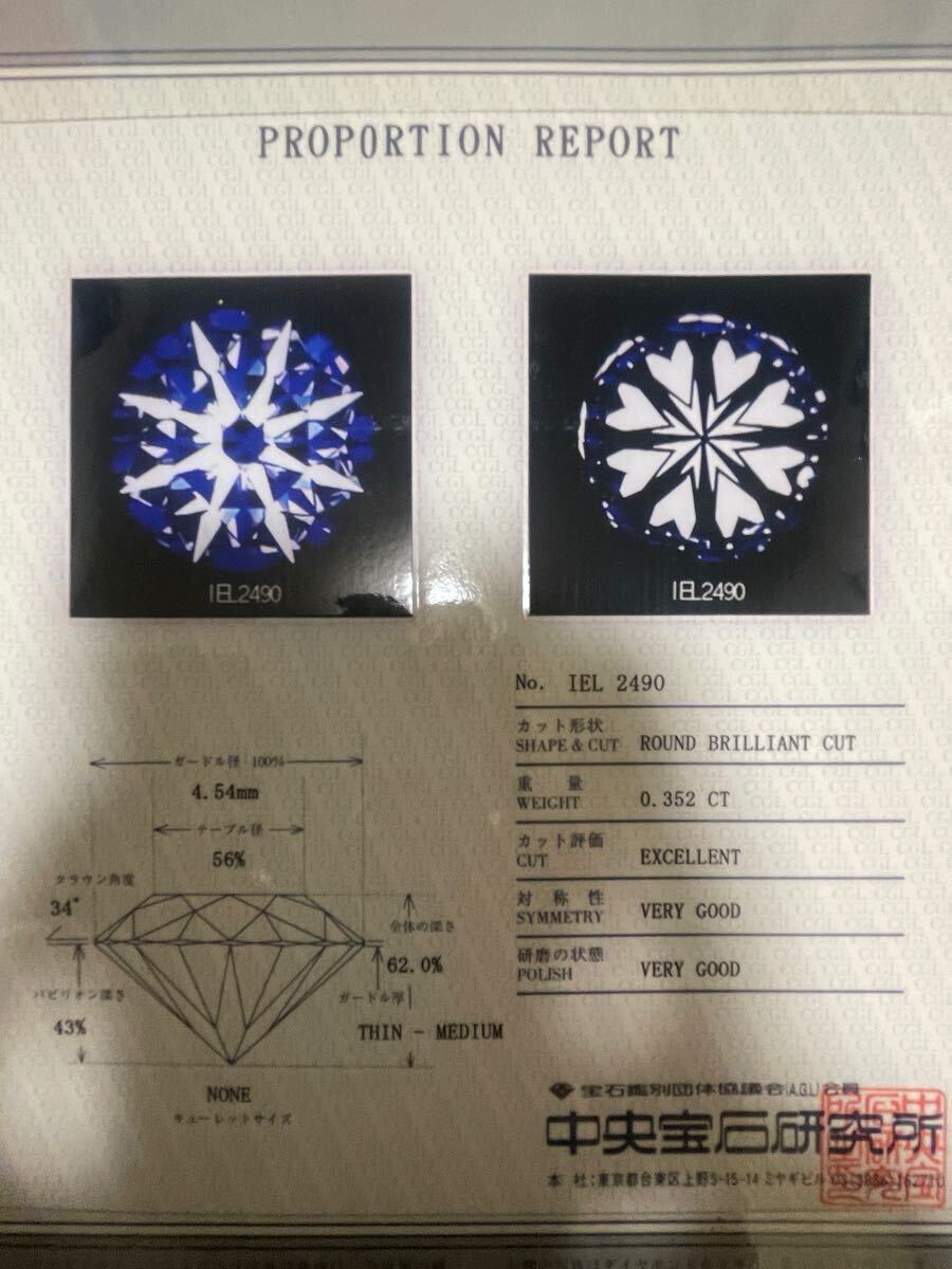 鑑定書の通りにダイヤモンドのグレードはかなり高いので輝きがハンパじゃないです。