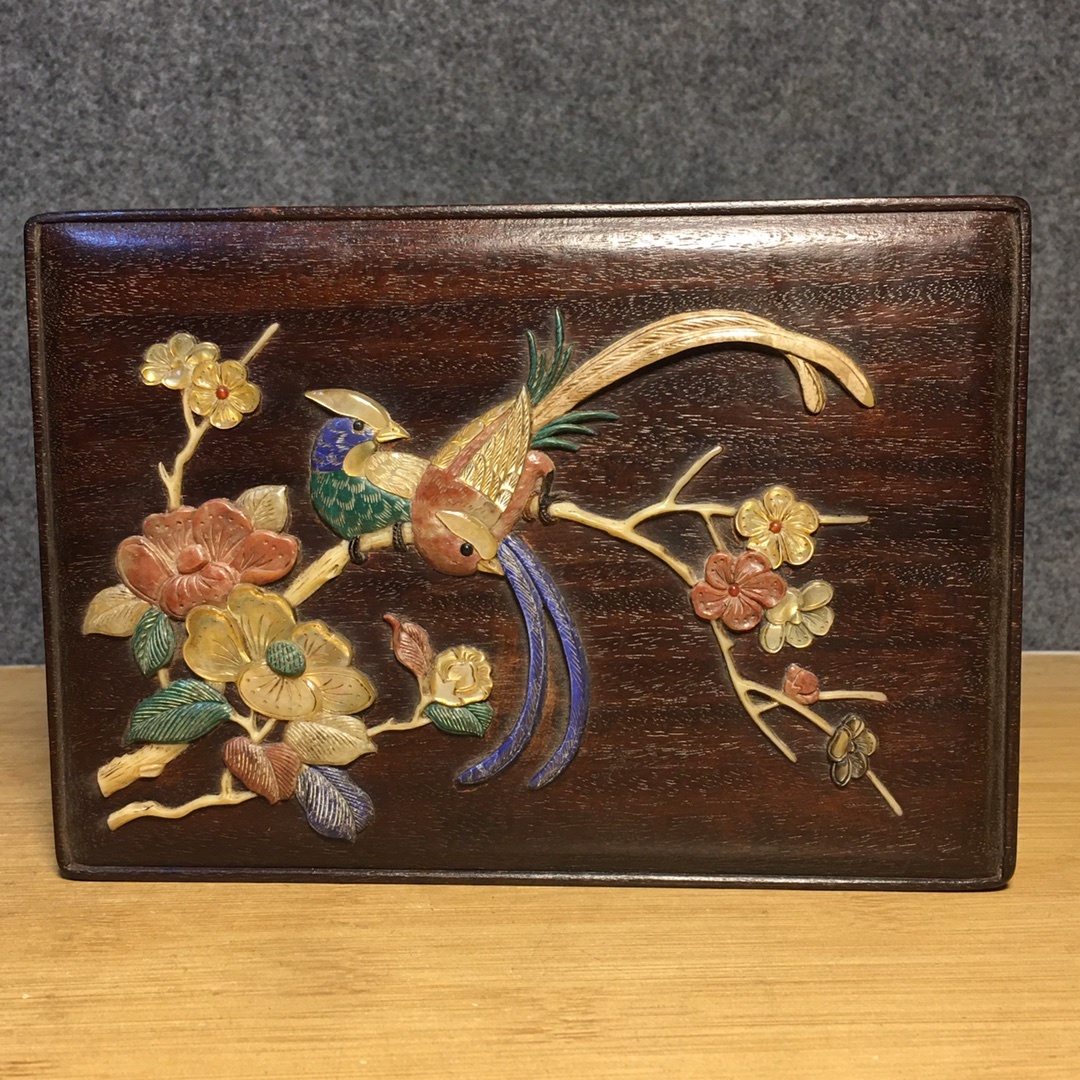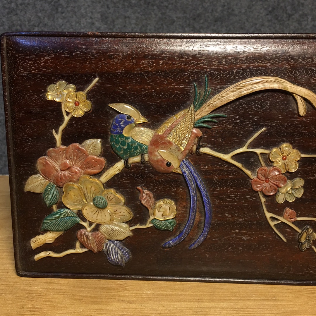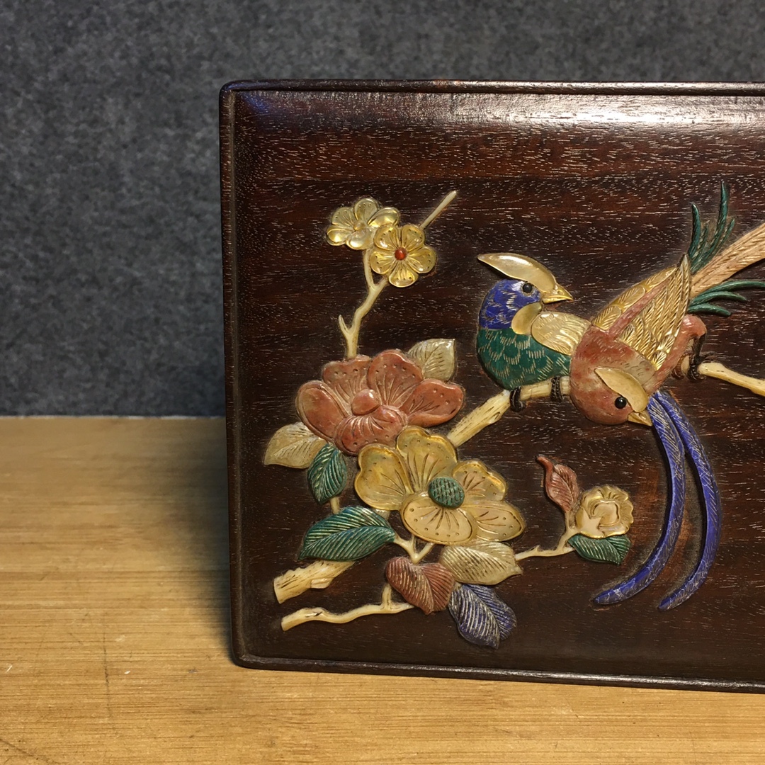 *珍品旧蔵* 清代 大葉黄花梨 モザイク百宝 ケース 時代物 擺件 置物 賞物 唐物 古美術品 中国古玩 K1226