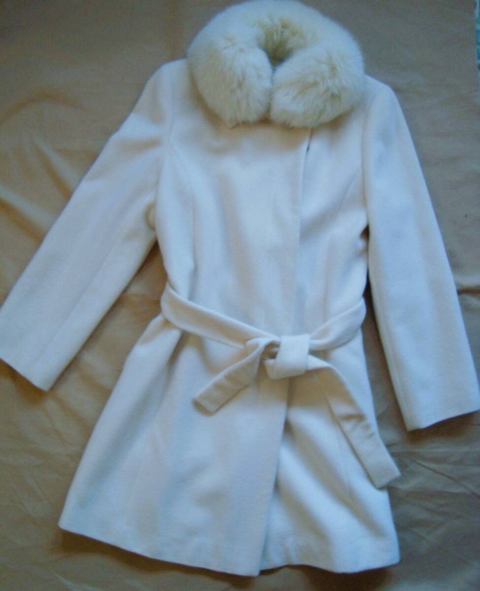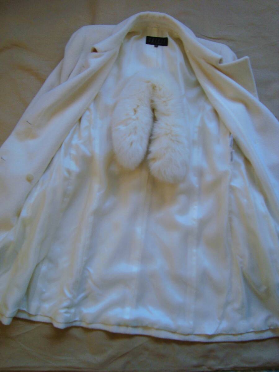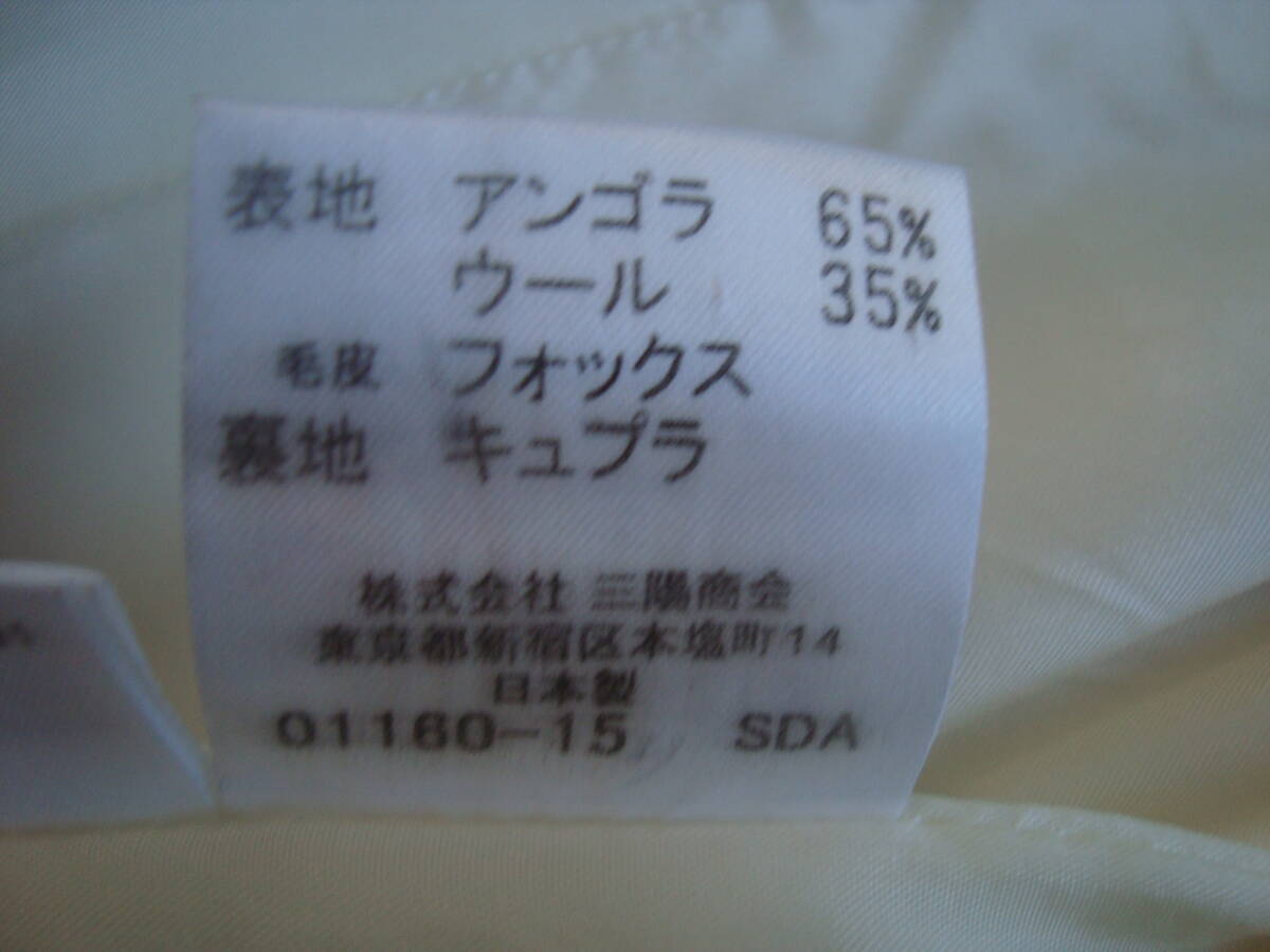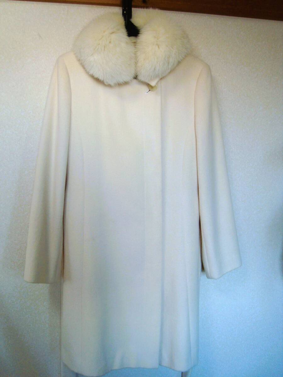 レディースコート SOLEIL ホワイト 白  サイズ40 襟(フォックス)取り外し可能 USED