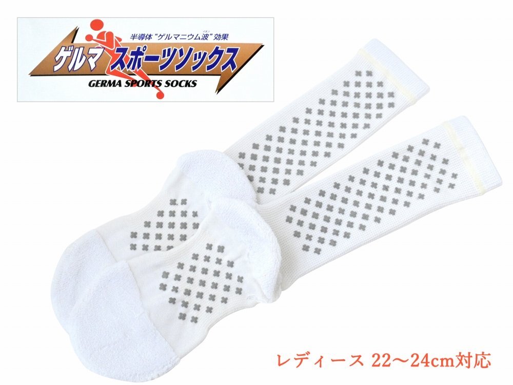 ■足の疲れ・こむら返り防止に!■ ゲルマスポーツソックス 22~24cm 女性用 ホワイト san-29 【レディース 婦人 ソックス 靴下】
