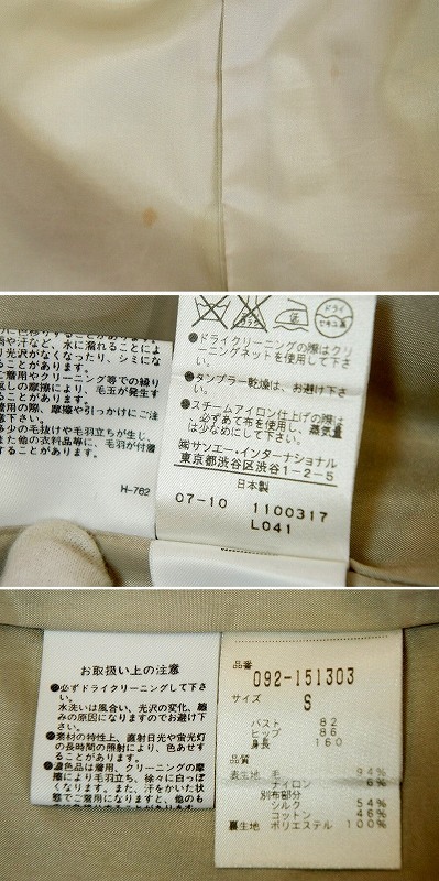素材 | 表地 毛94% ナイロン6% 別布部分 シルク54% コットン46% 裏地 ポリエステル100% |