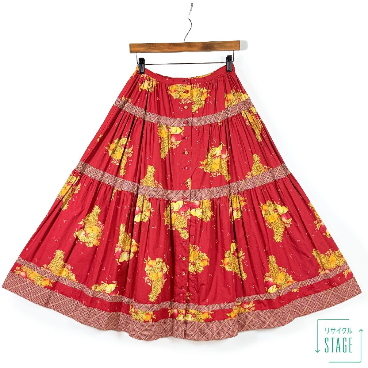 ケティ★ギャザースカート サイズM 赤系 パッチワーク z11102