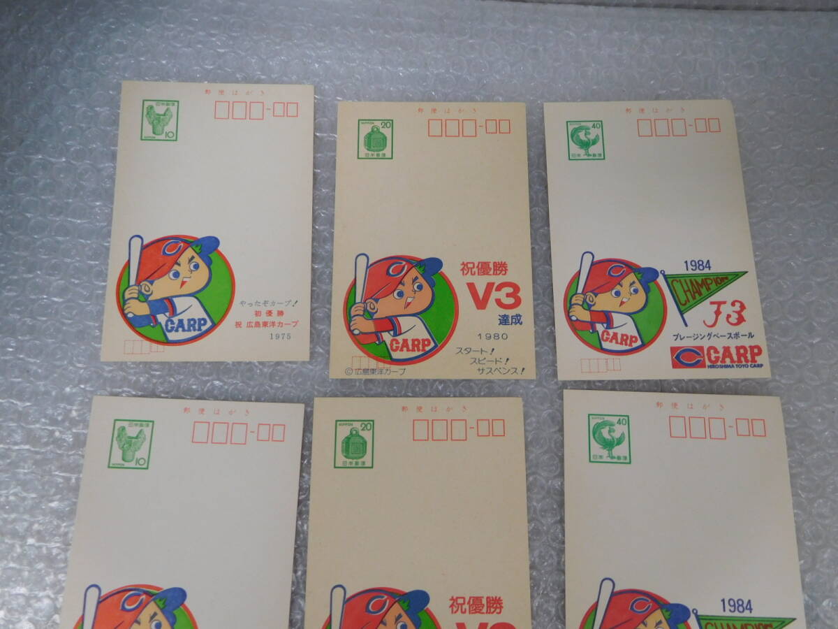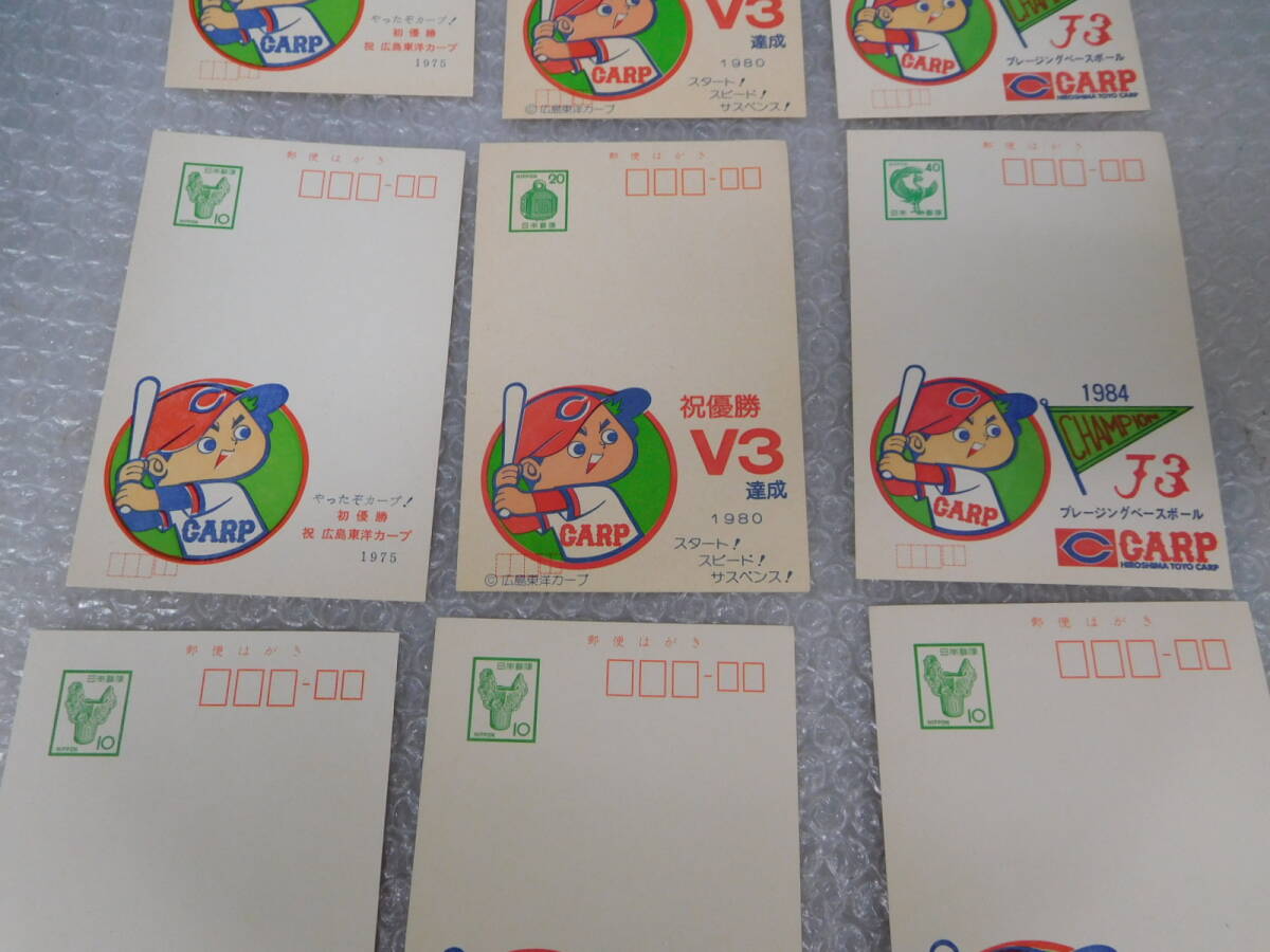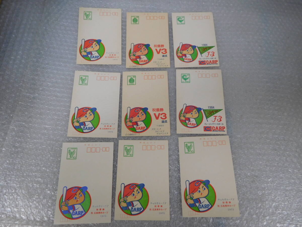 9枚セット レア 希少 広島東洋カープ 優勝記念 ハガキ 1975 1980 1984 はがき 葉書 当時物 カープ 日本一