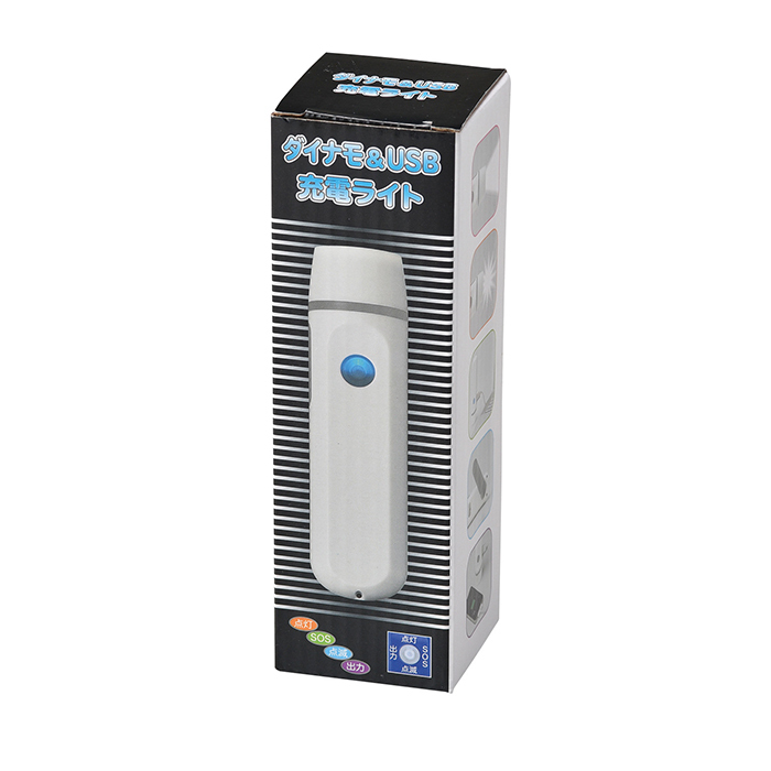 | 手回し充電ライト USB充電ライト ハンディライト ダイナモ USB充電 ライト スマホ充電 明るい 点滅灯 SOS点滅 緊急 非常時 避難 災害 震災 水害 停電 夜間 万が一の備え 屋外 レジャー キャンプ アウトドア イベント 景品 ノベルティ 行事 くじ ガラポン ダイナモ&USB充電ライト |