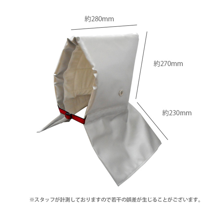 | 燃えにくい難燃素材を使用したアルミ防災頭巾。 耳穴付きで避難誘導の声も聞こえます。 衝撃吸収性の高い素材を使用。 頭巾の後ろには、名前や連絡先が記載できます。 |