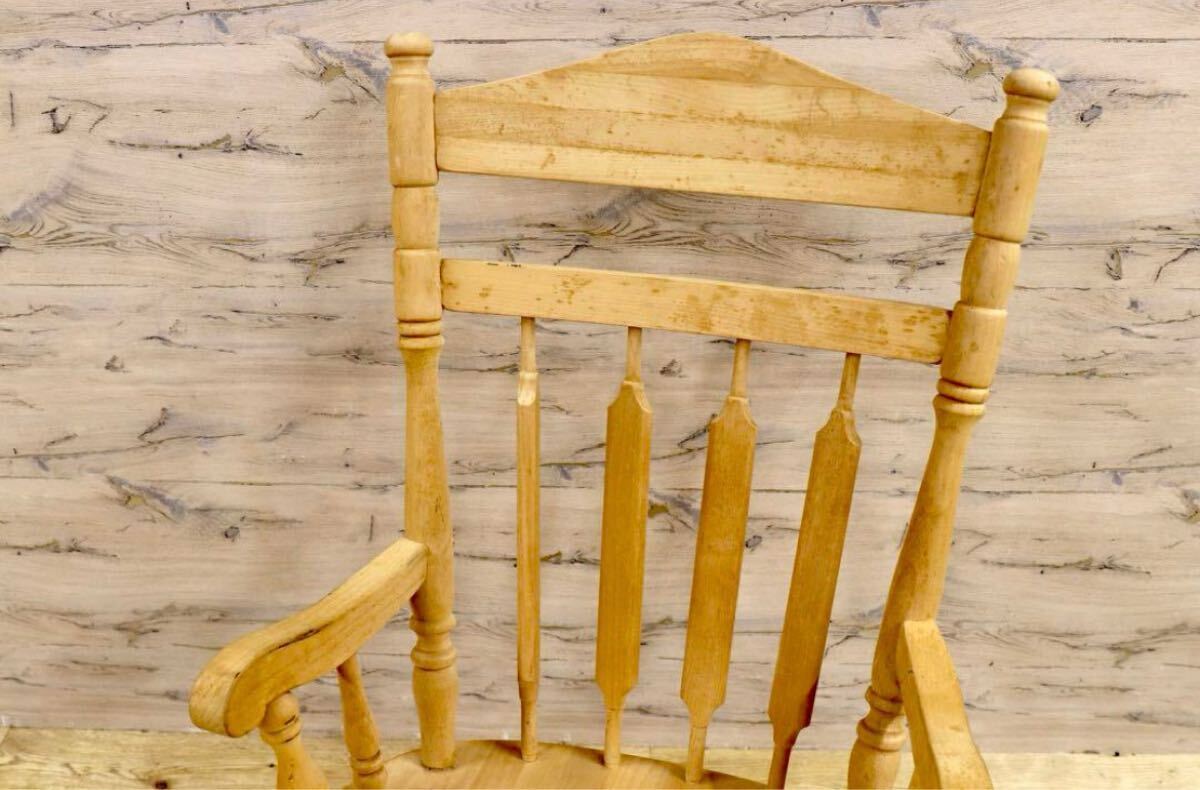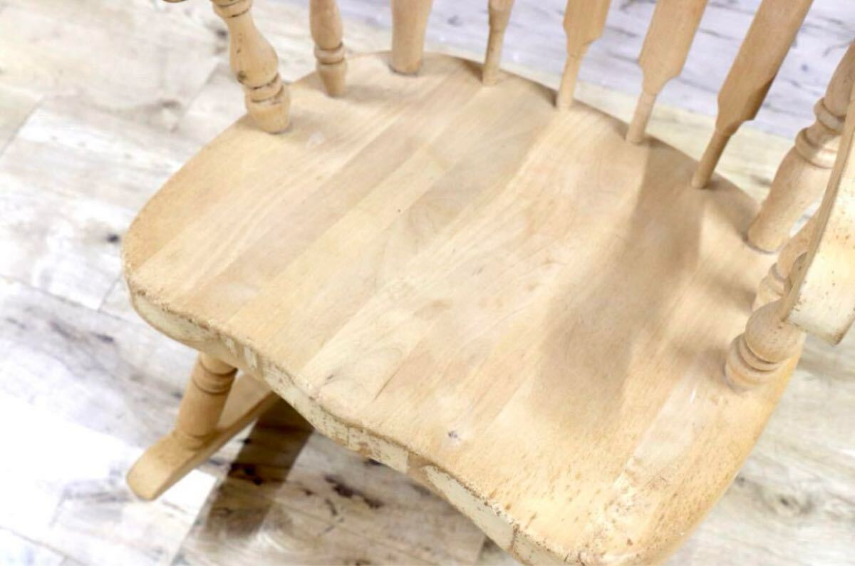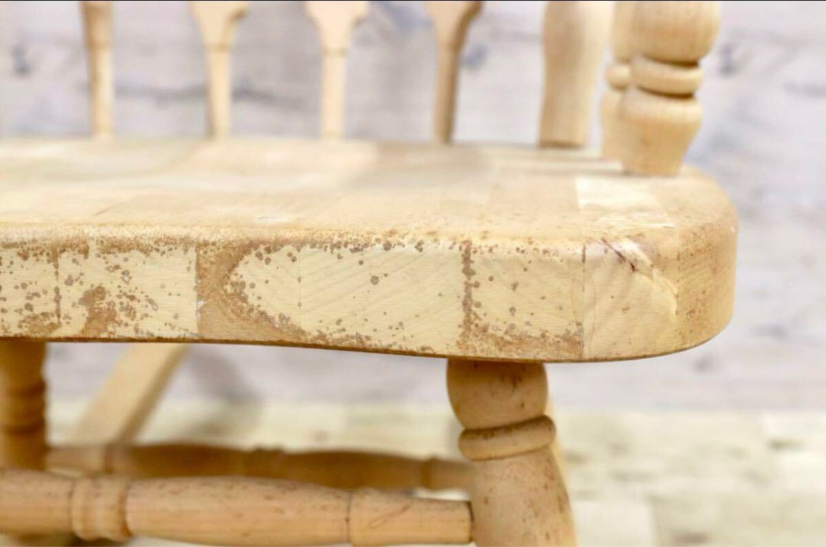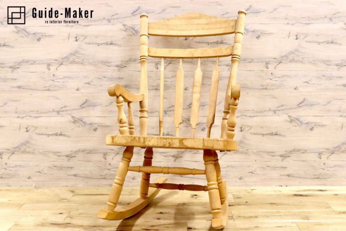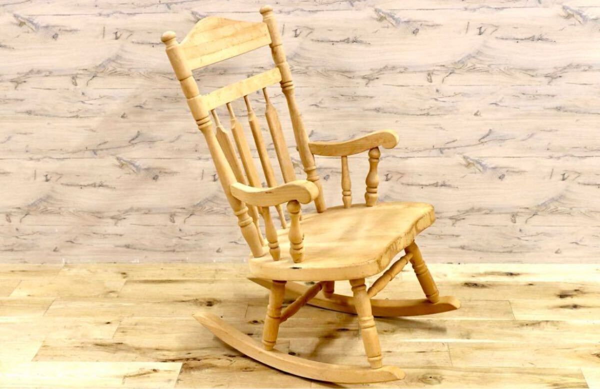 アメリカ製のヴィンテージロッキングチェア。無塗装ならではの経年変化、シミが味わいとなり、シャビーシックな雰囲気が素敵です。日本人に丁度良いサイズ感でゆらり感が心地よいお勧めの品です。