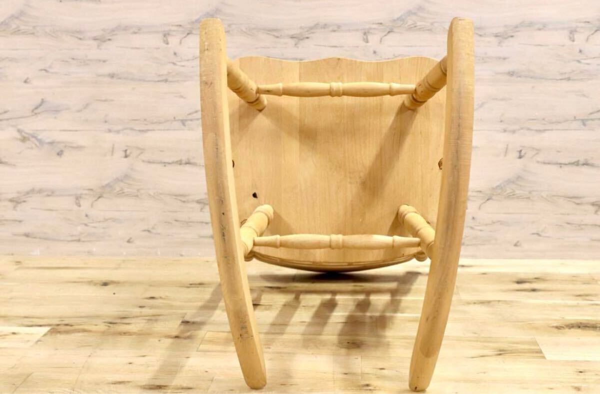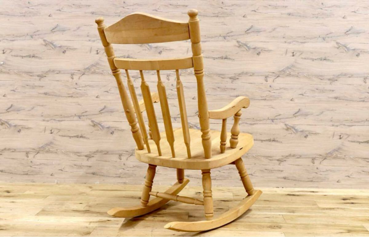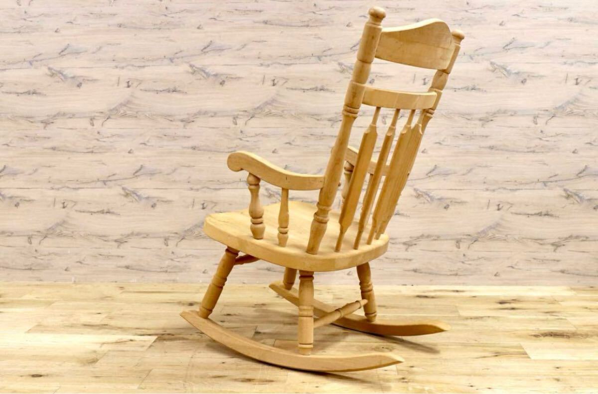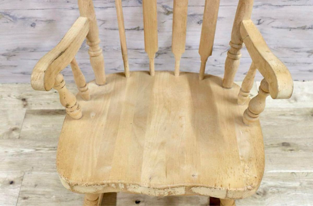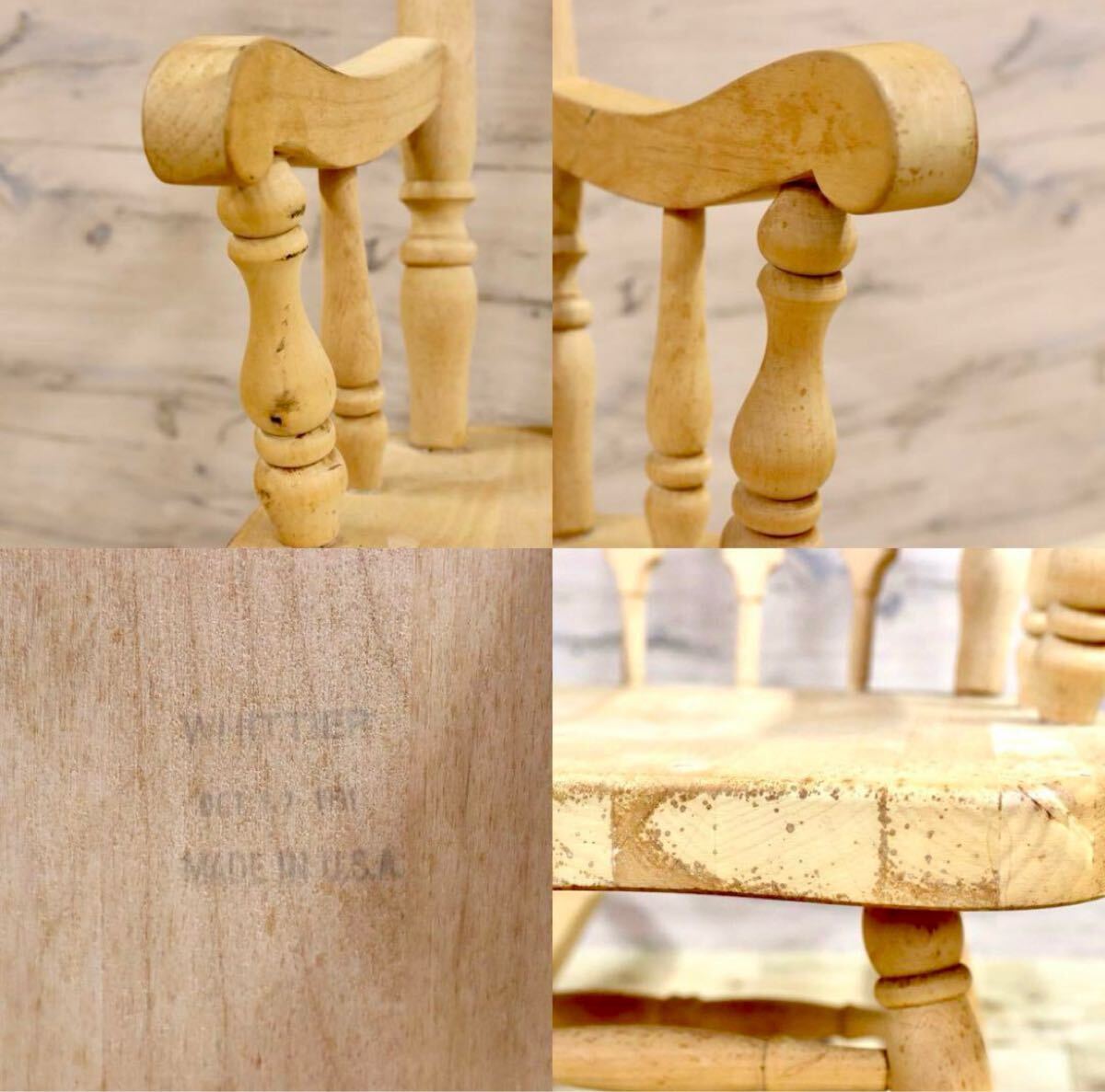 アメリカ製のヴィンテージロッキングチェア。無塗装ならではの経年変化、シミが味わいとなり、シャビーシックな雰囲気が素敵です。日本人に丁度良いサイズ感でゆらり感が心地よいお勧めの品です。